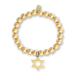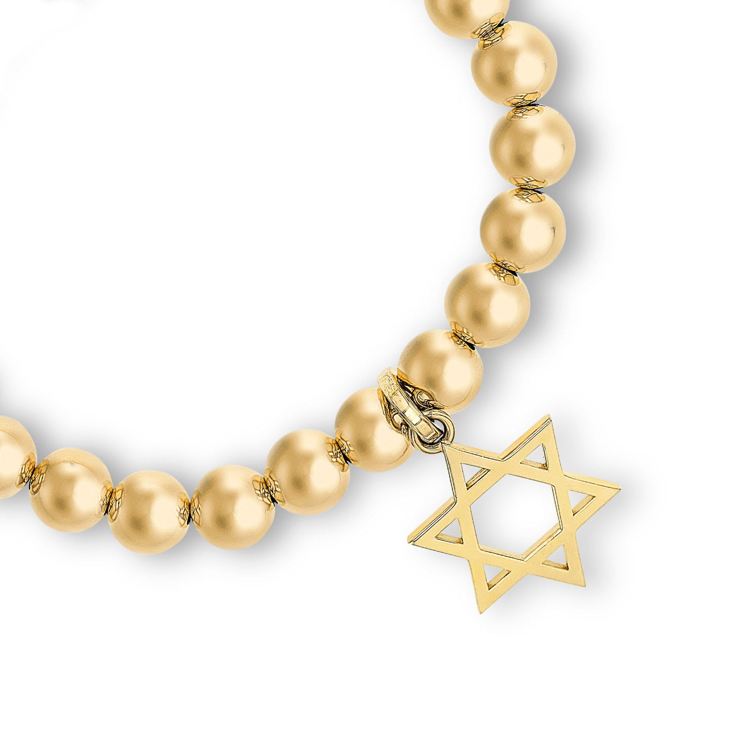 14k Yellow Gold Beaded Bracelet with Star of David Charm