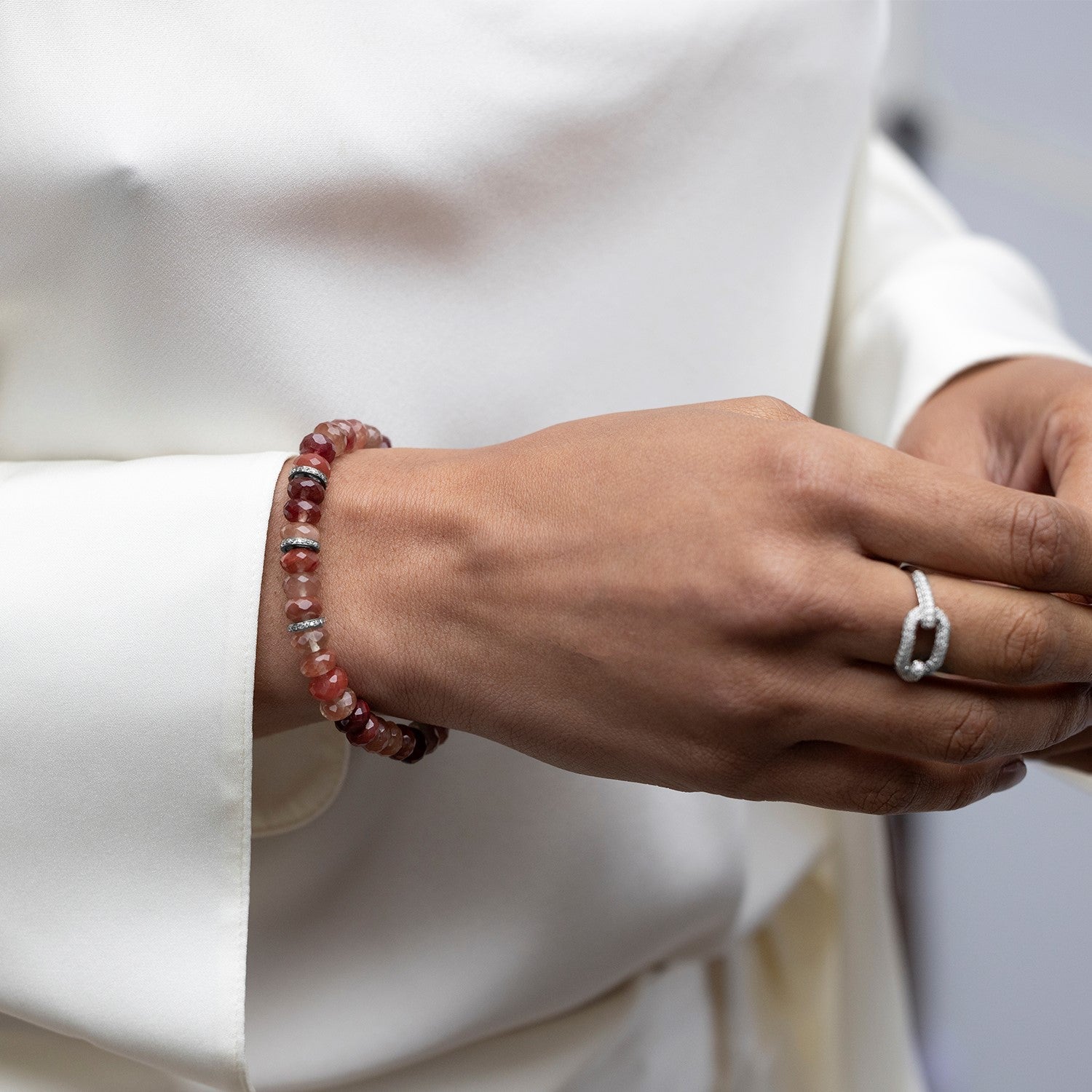 Andesine Labradorite Bracelet with Diamond Rondelles - 8mm