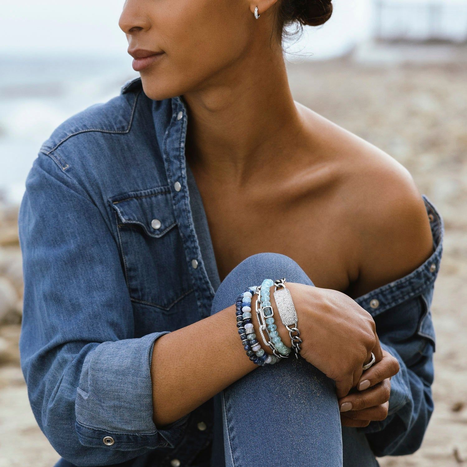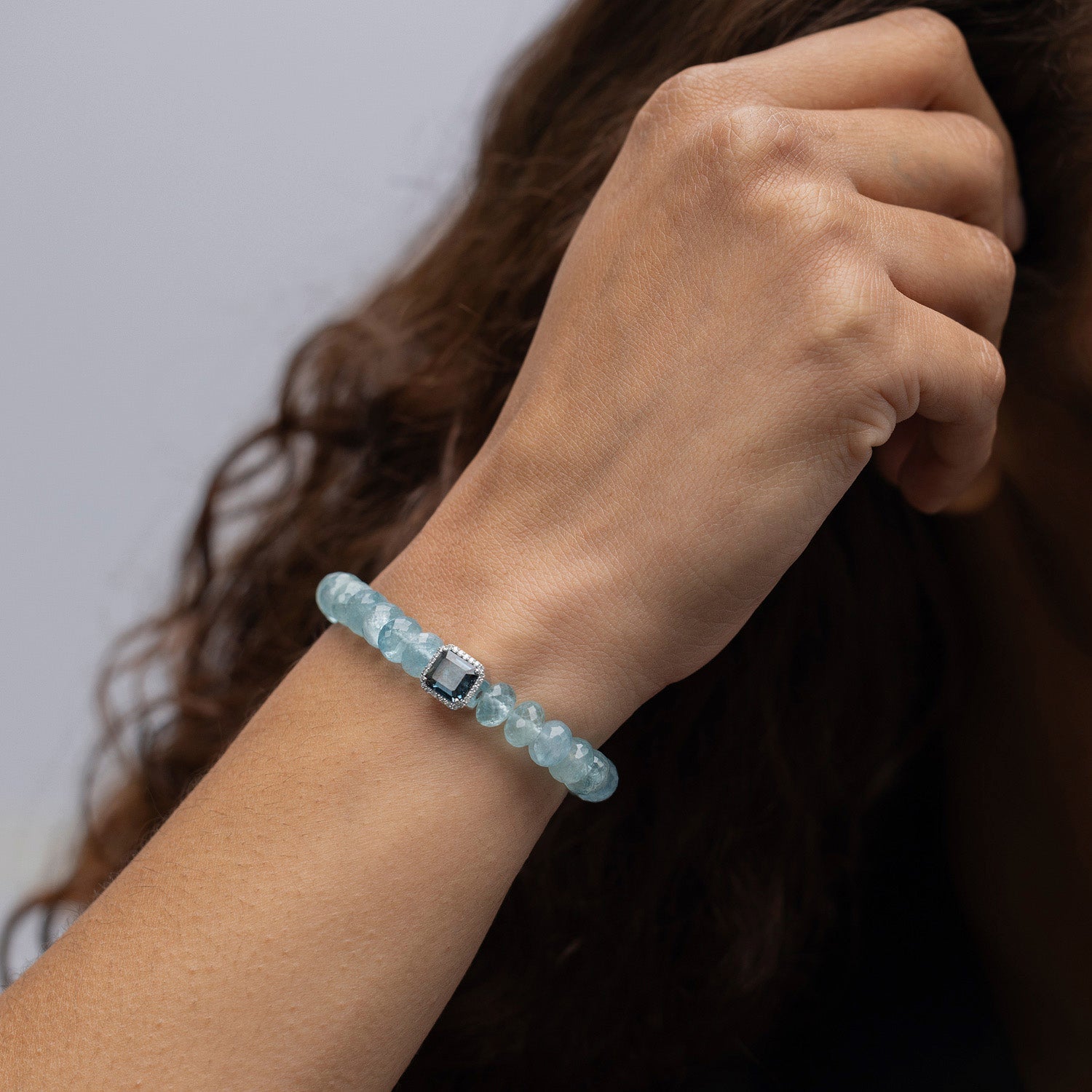 Aquamarine Bracelet with London Blue Topaz Bead Connector - 8mm