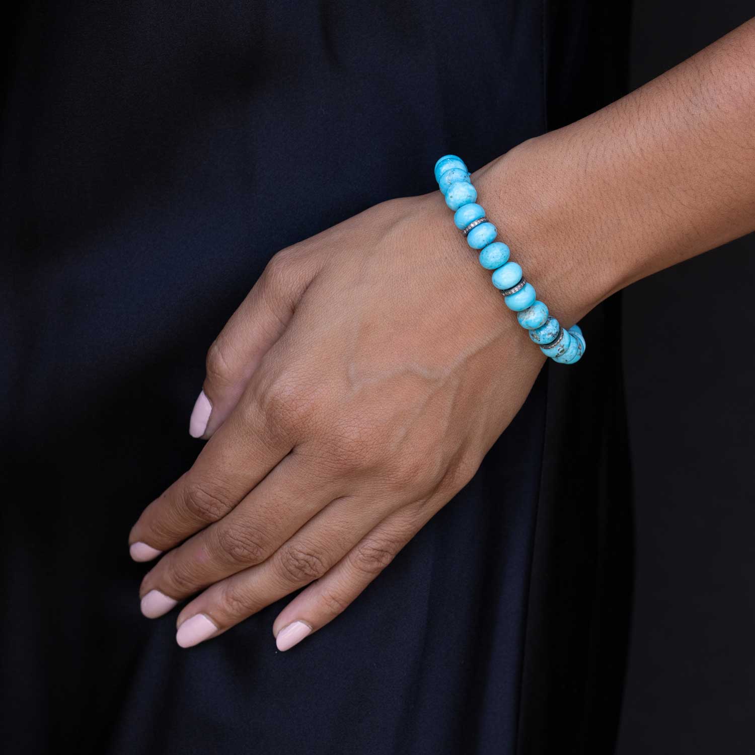 Arizona Turquoise Beaded Bracelet with 3 Diamond Rondelles - 10mm