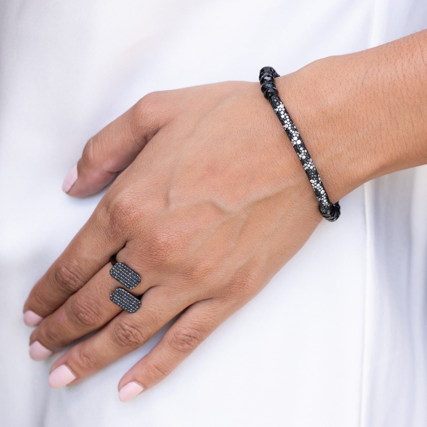Black and White Cobblestone Diamond Bar and Spinel Bracelet - 6mm
