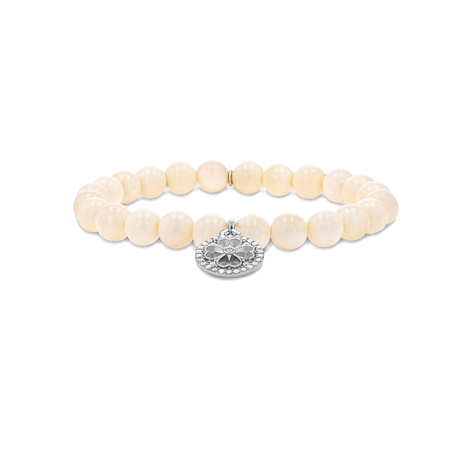 Bone Bracelet with Diamond Open Clover Charm - 8mm