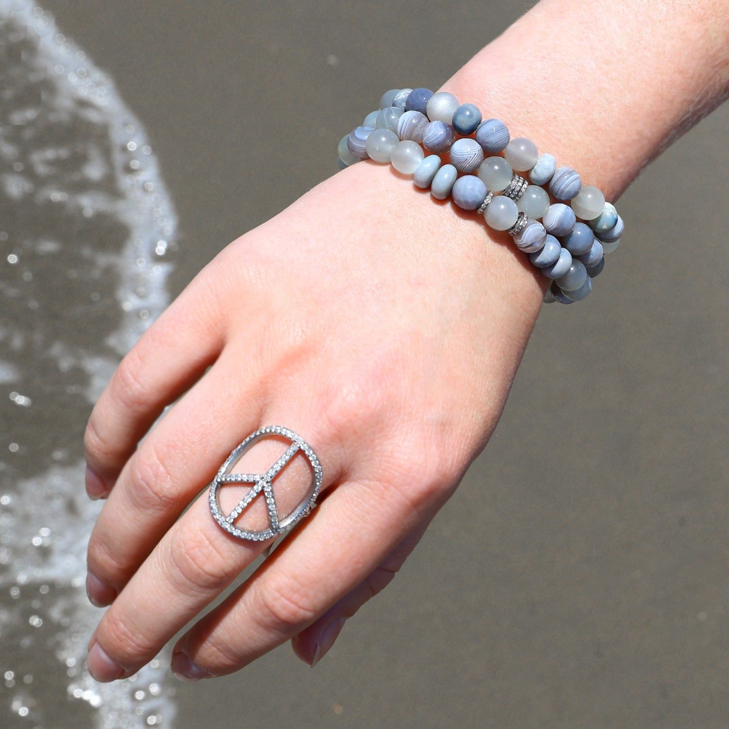 Butterfly Beach Stack - Grey Moonstone, Botswana Agate & Opal - 8mm