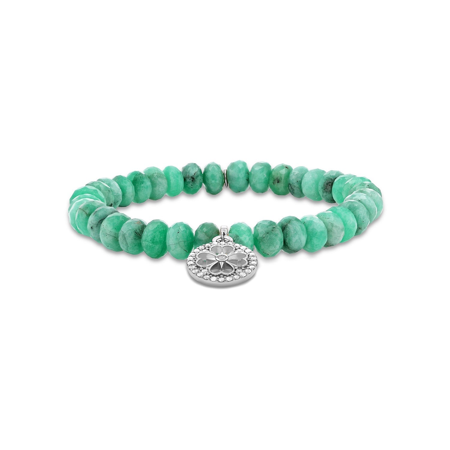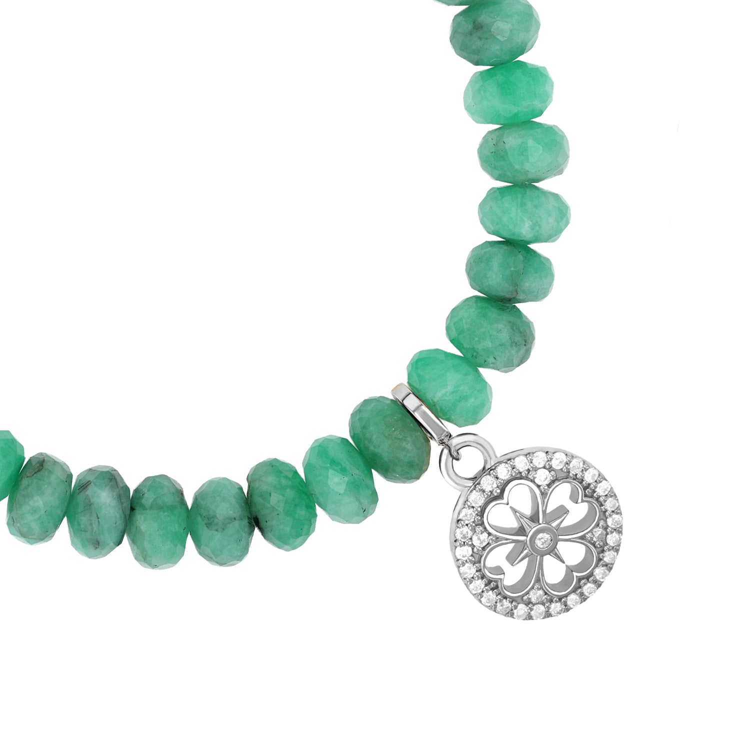 Emerald Bracelet with Diamond Open Clover Charm - 7mm