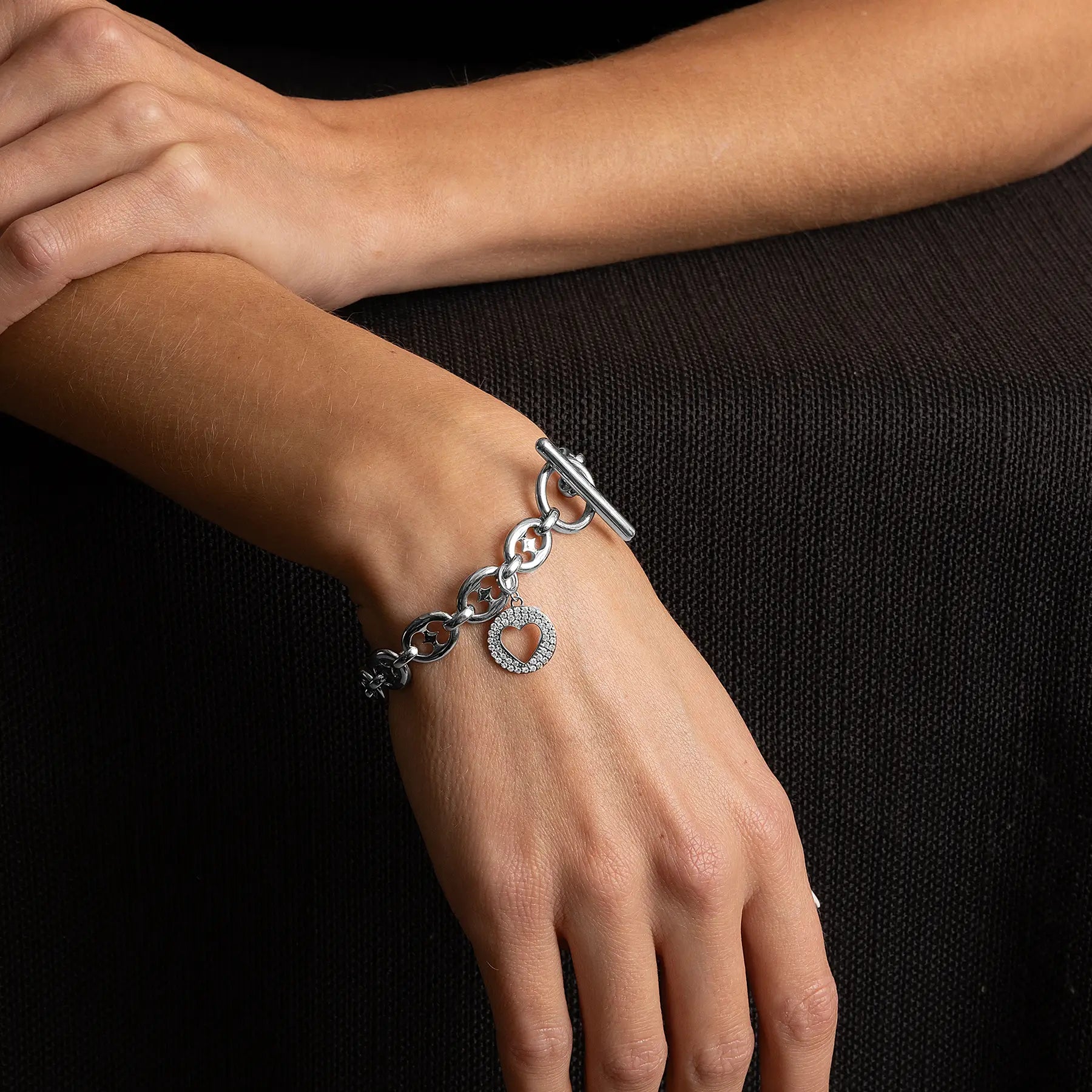 Hidden Heart Mariner Bracelet with Diamond Open Heart Charm