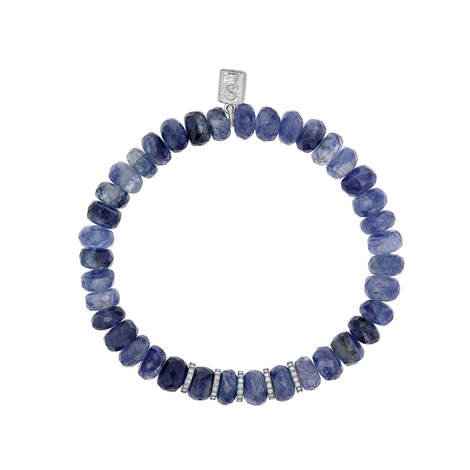 Kyanite Bracelet with 5 Diamond Rondelles - 7mm