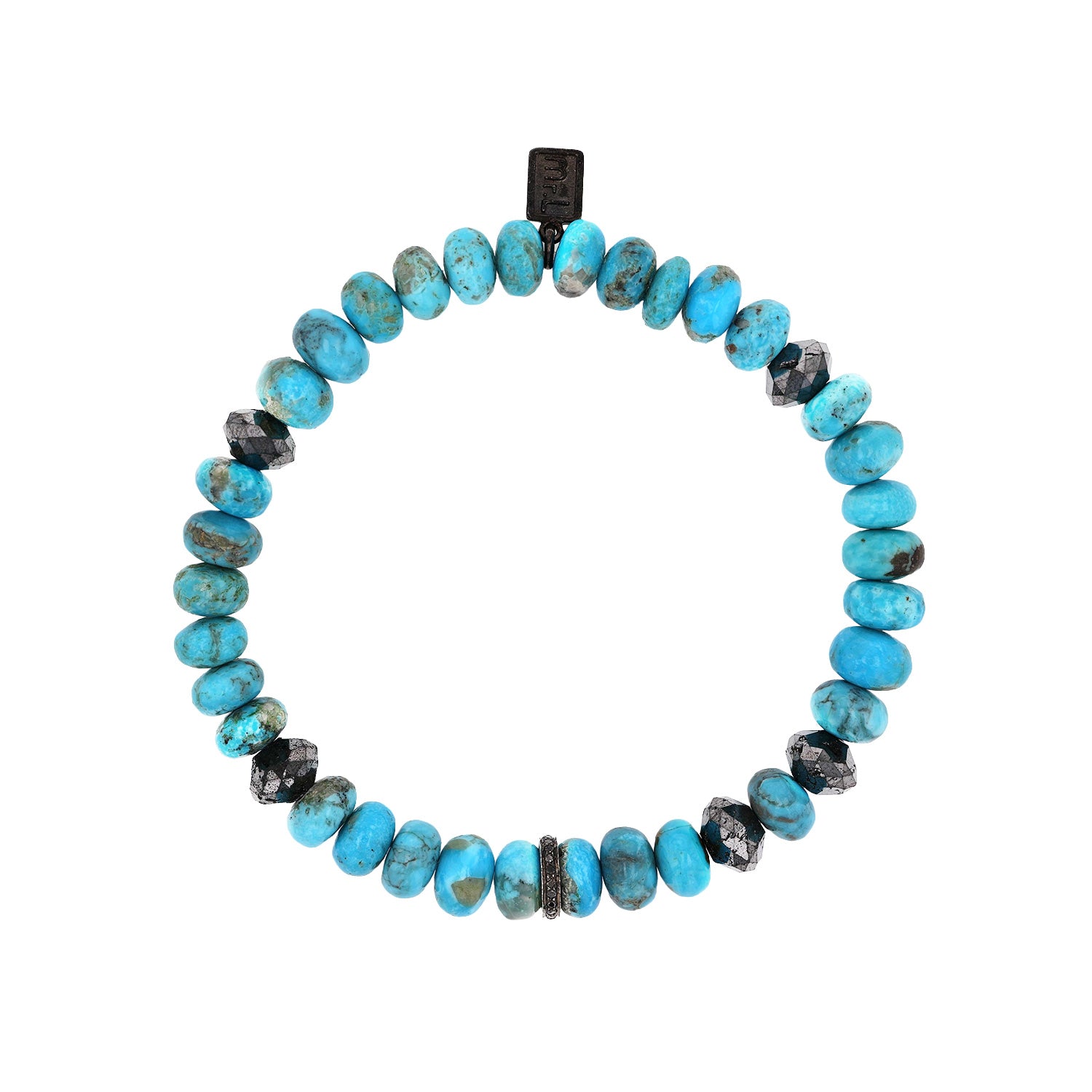 Men's Mr. LOWE Arizona Turquoise & Black Diamond Bracelet with Black Diamond Rondelle