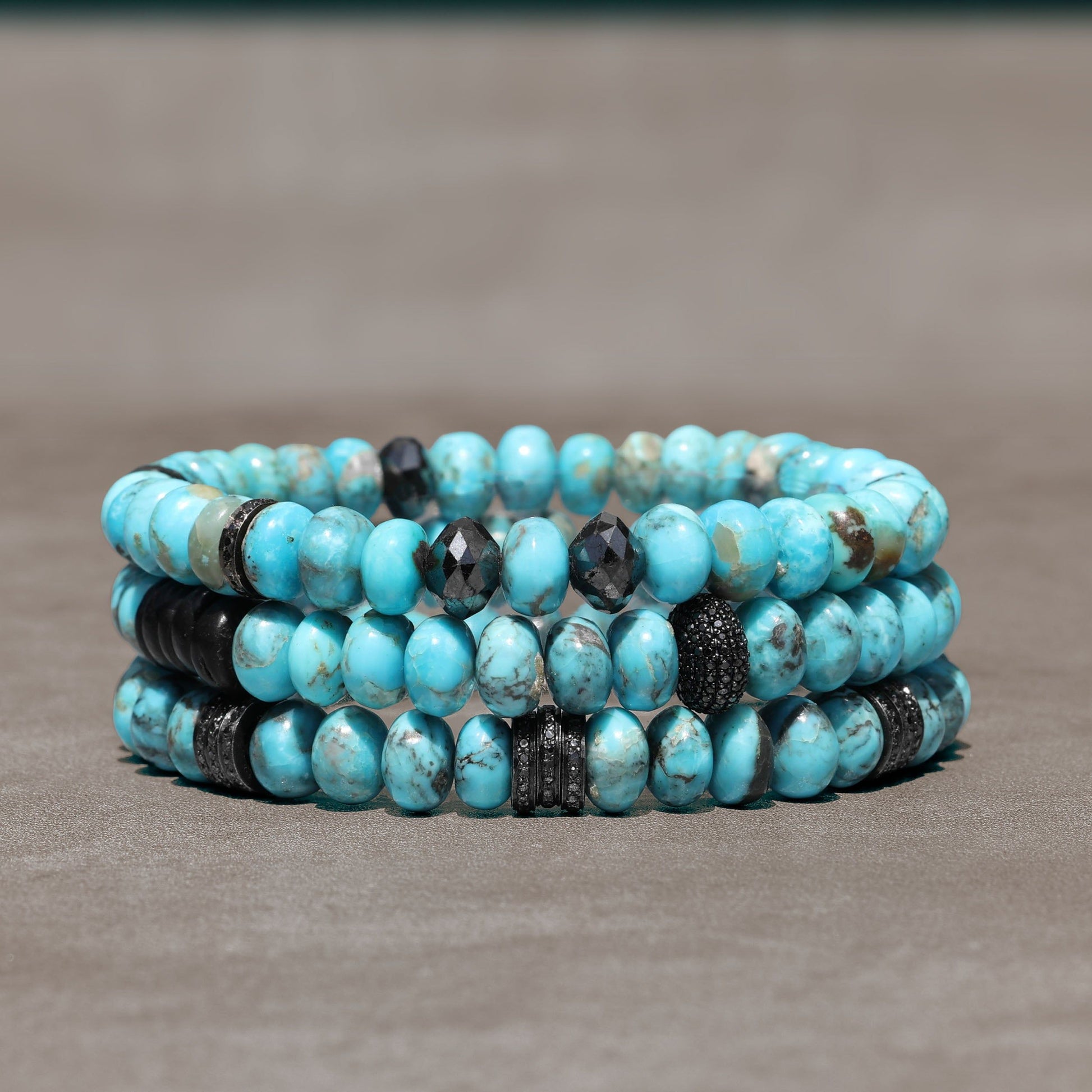 Men's Mr. LOWE Arizona Turquoise Bracelet with 7 Black Diamond Rondelles