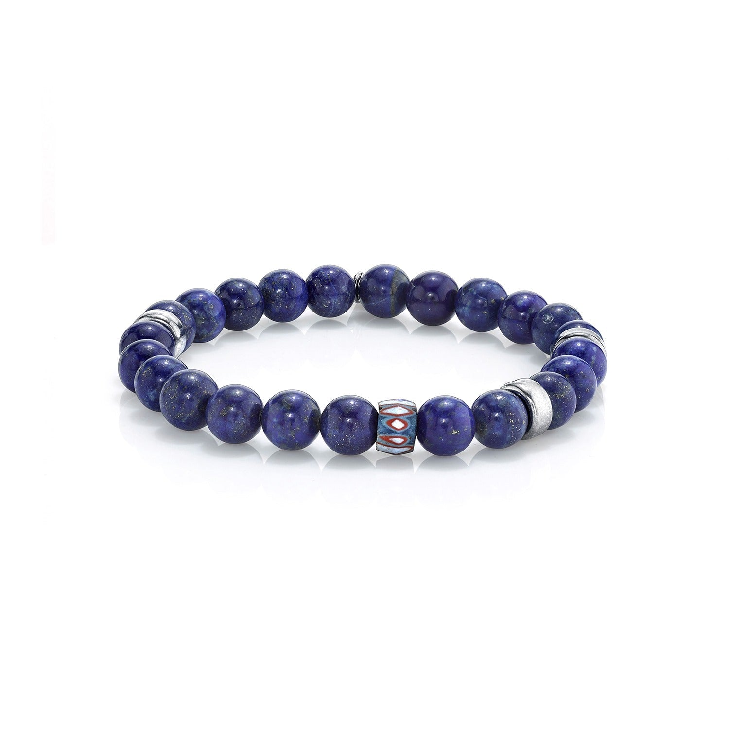 Men's Mr. LOWE Lapis & Silver Bracelet with African Bead - 8mm