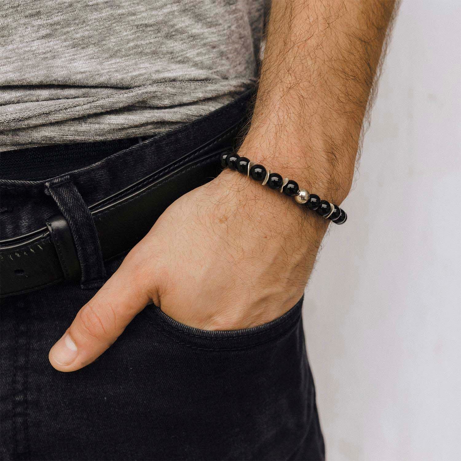 Men's Mr. LOWE Onyx Bracelet with Silver Bead and Wavy Disks - 8mm