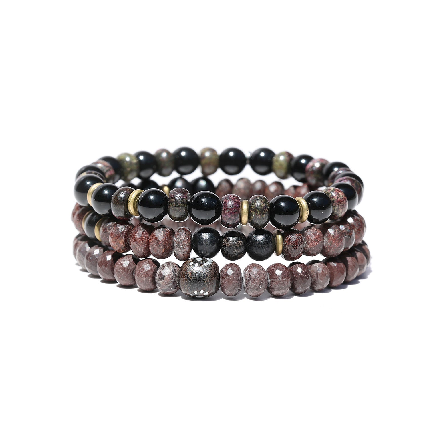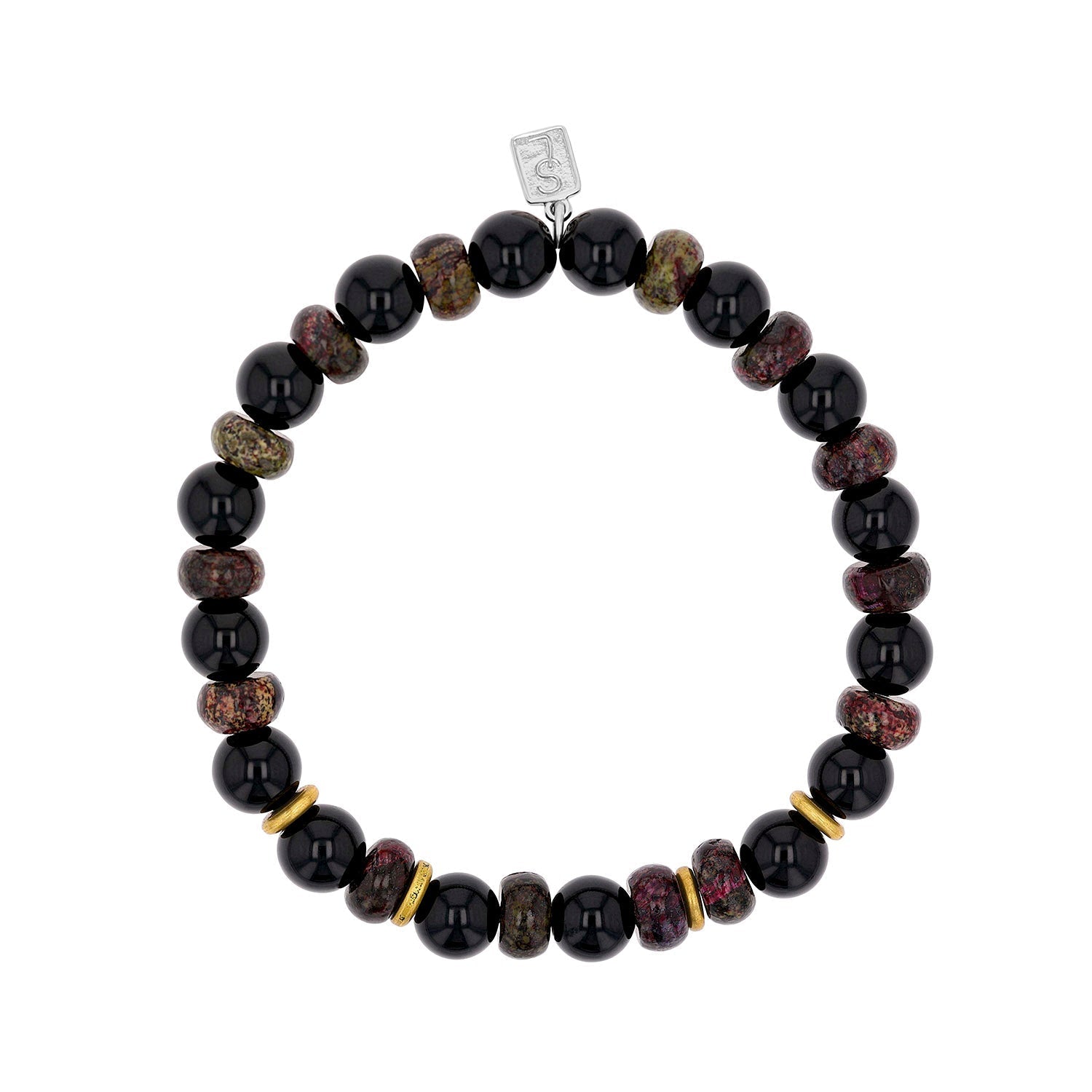 Men's Mr. LOWE Onyx & Ruby Zoisite Mix Bracelet with Brass Rondelles - 8mm
