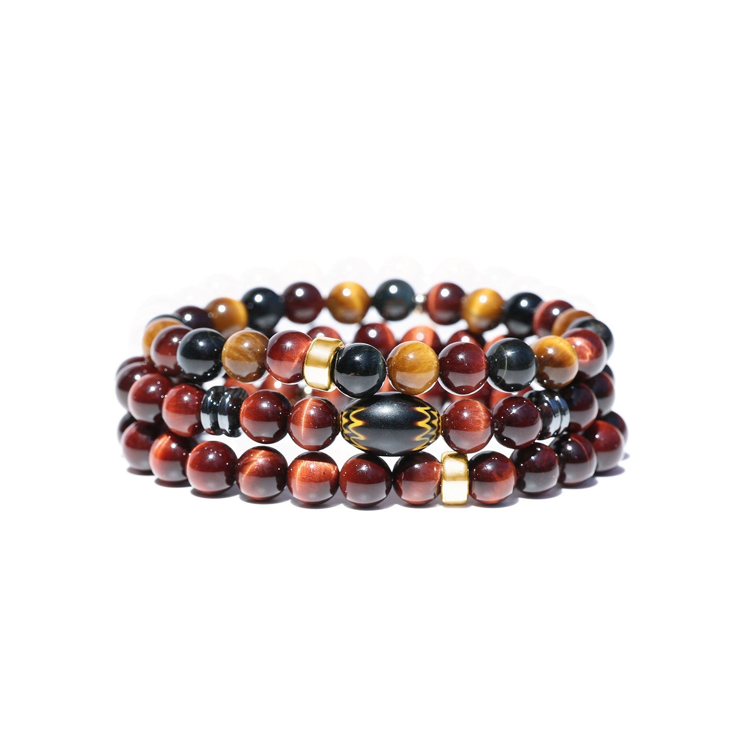 Men's Mr. LOWE Red Tiger's Eye Bracelet with 14k Gold Rondelle - 8mm
