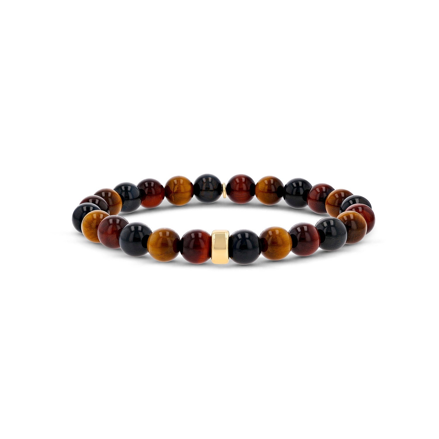 Men's Mr. LOWE Tri Color Tiger's Eye Bracelet with 14k Gold Rondelle - 8mm