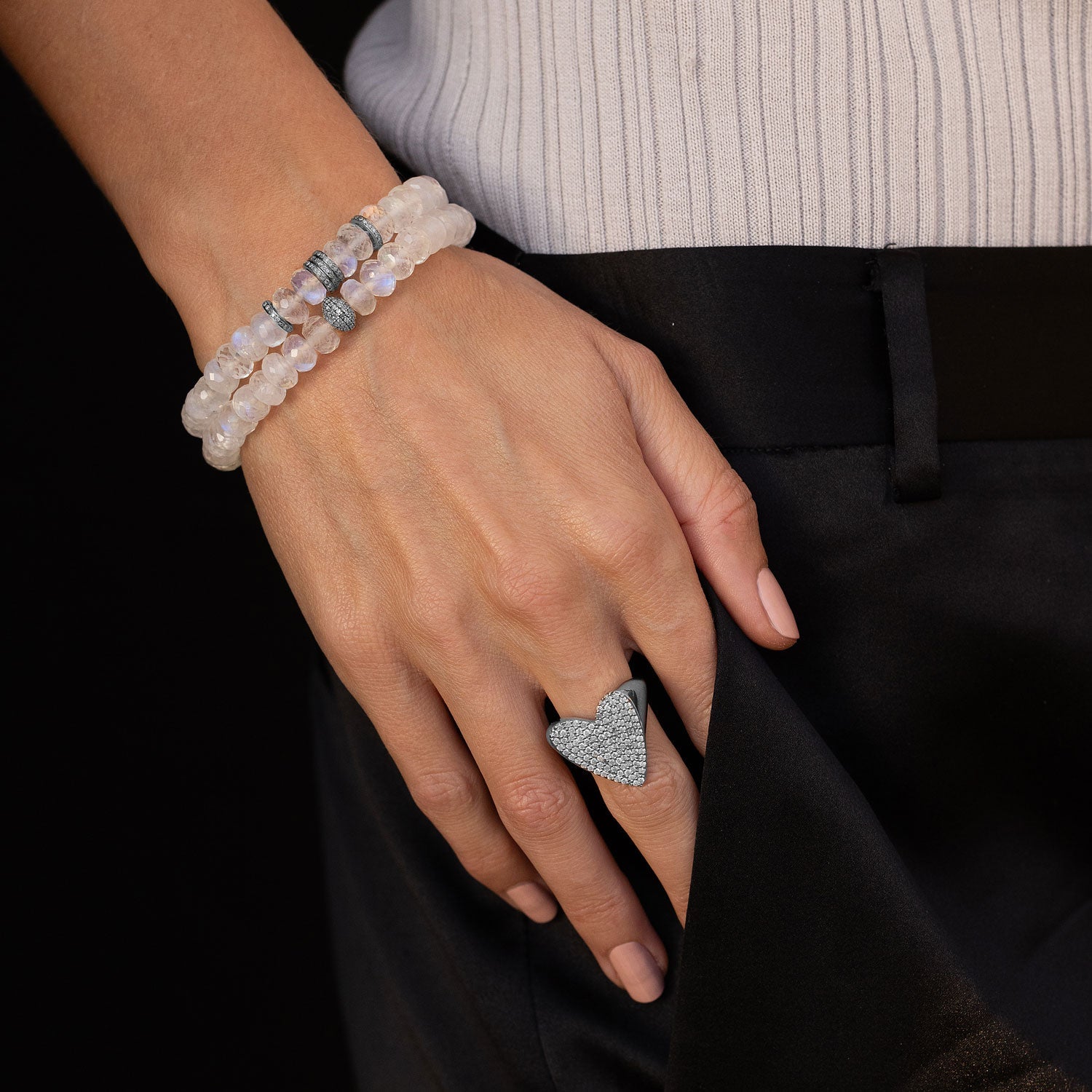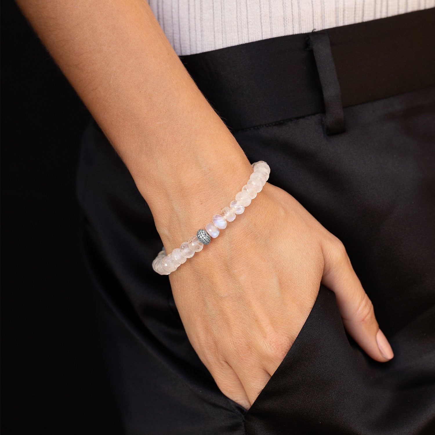 Moonstone Beaded Bracelet with Diamond Donut - 8mm