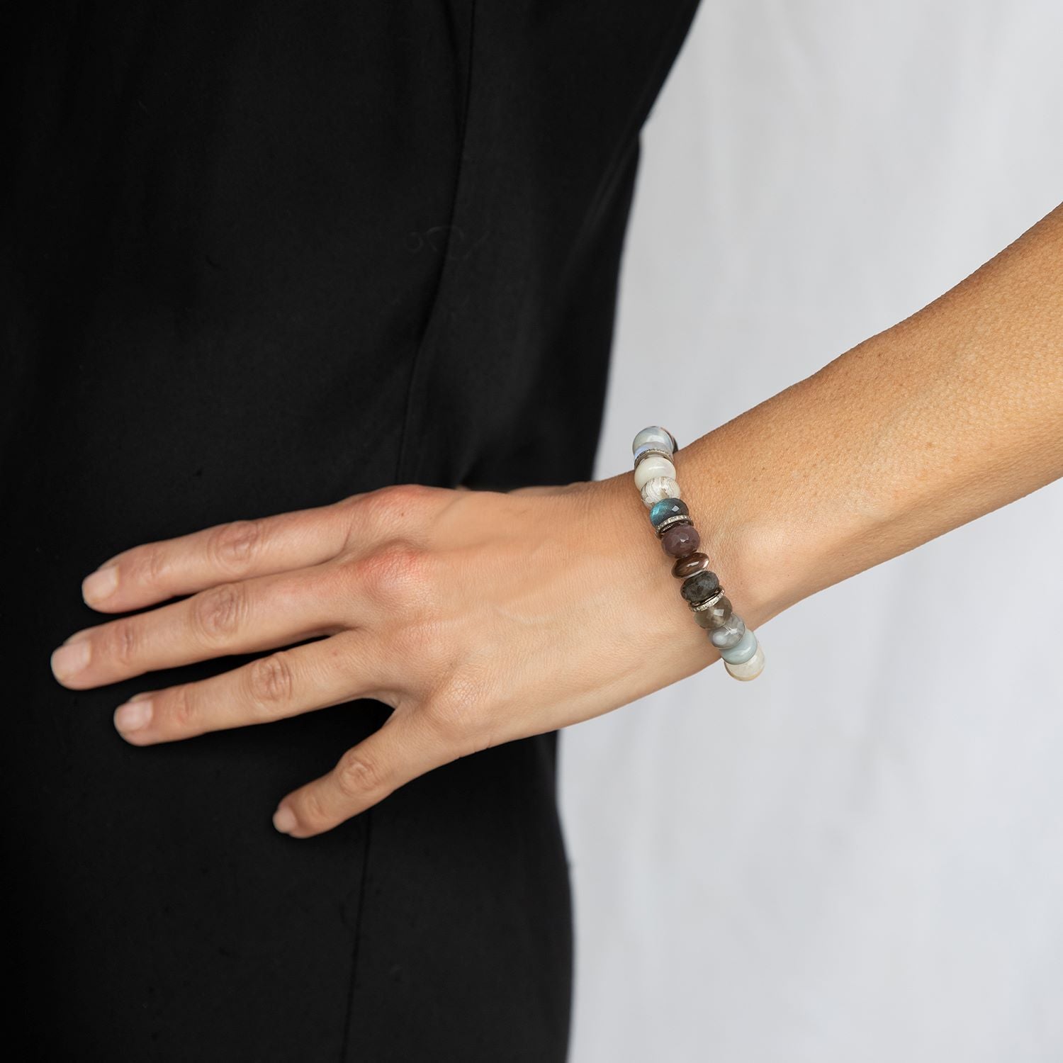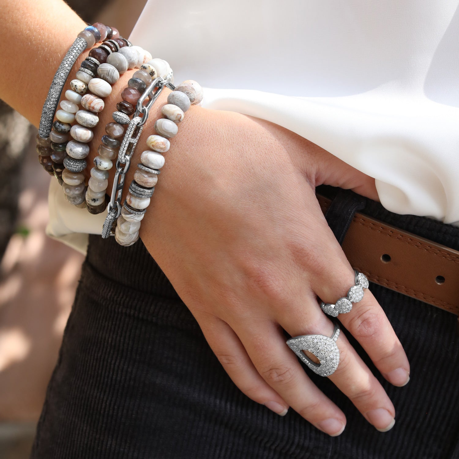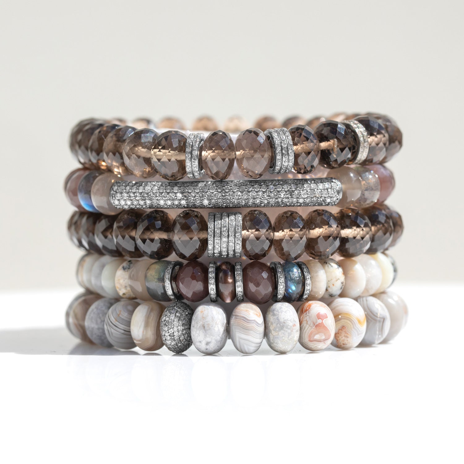 Neutral Gradient Bead Bracelet with 5 Diamond Rondelles