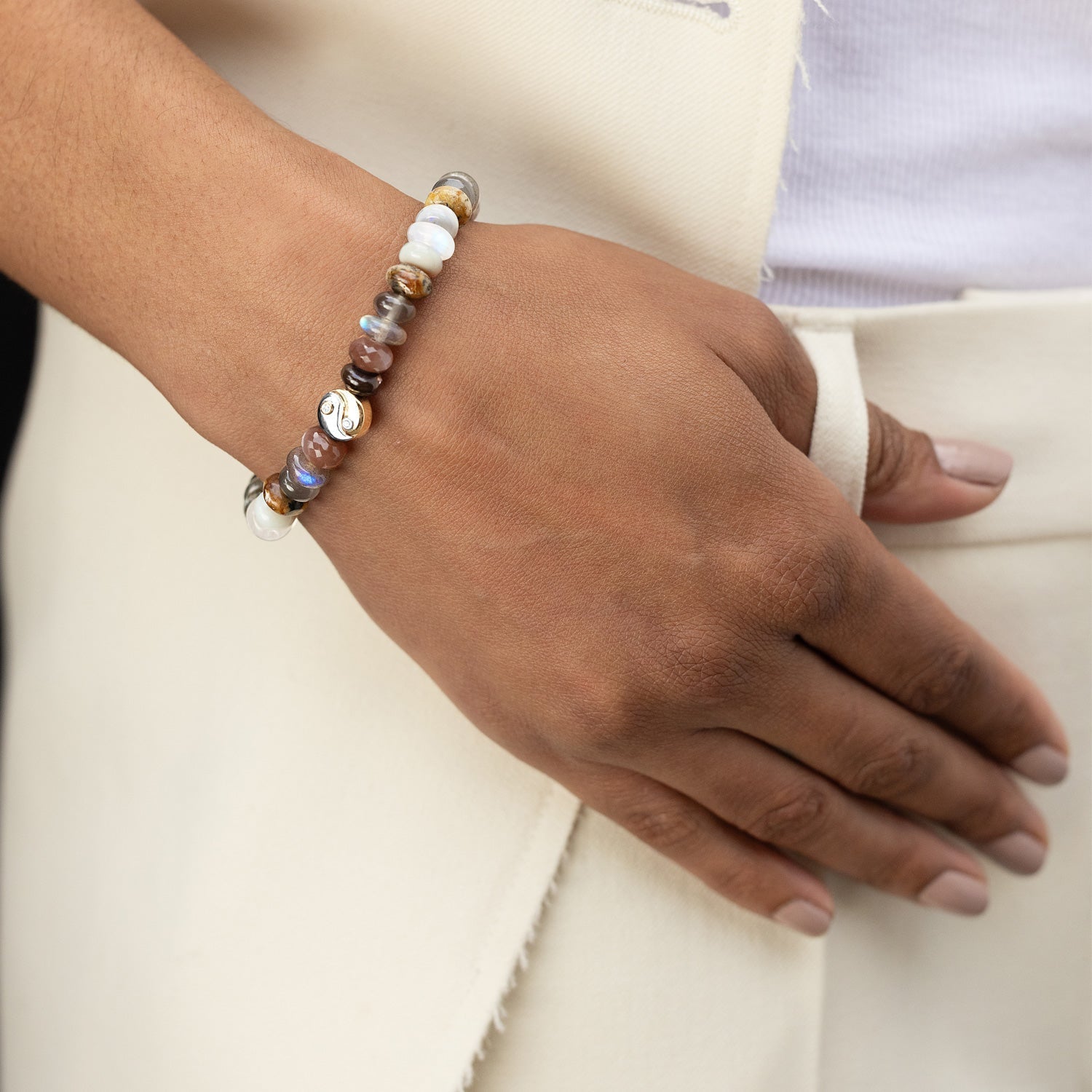 Neutral Gradient Bracelet with Mix Metal Yin Yang Bead - 8mm
