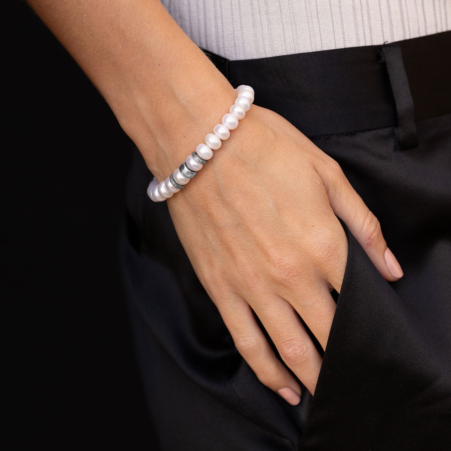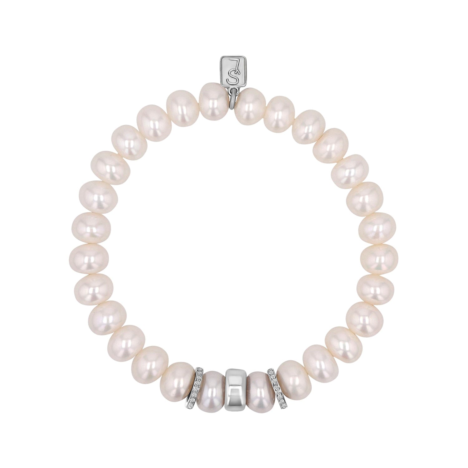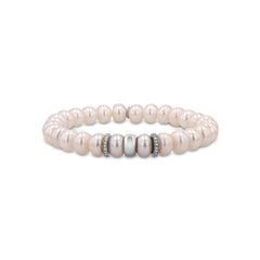 Pearl Bracelet with Diamond and Silver Rondelles - 8mm