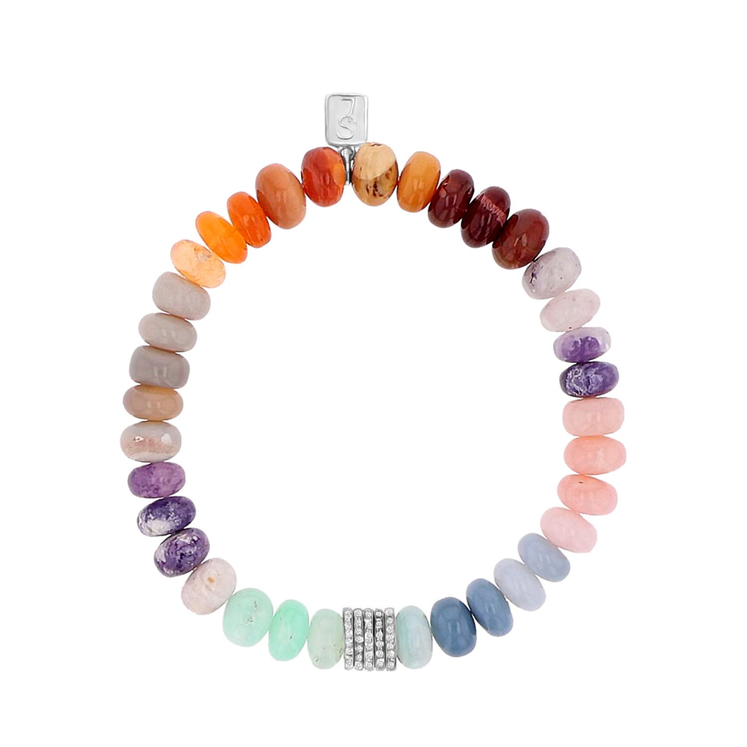Rainbow Candy Opal Bead Bracelet with 5 Pave Diamond Rondelles - 8mm