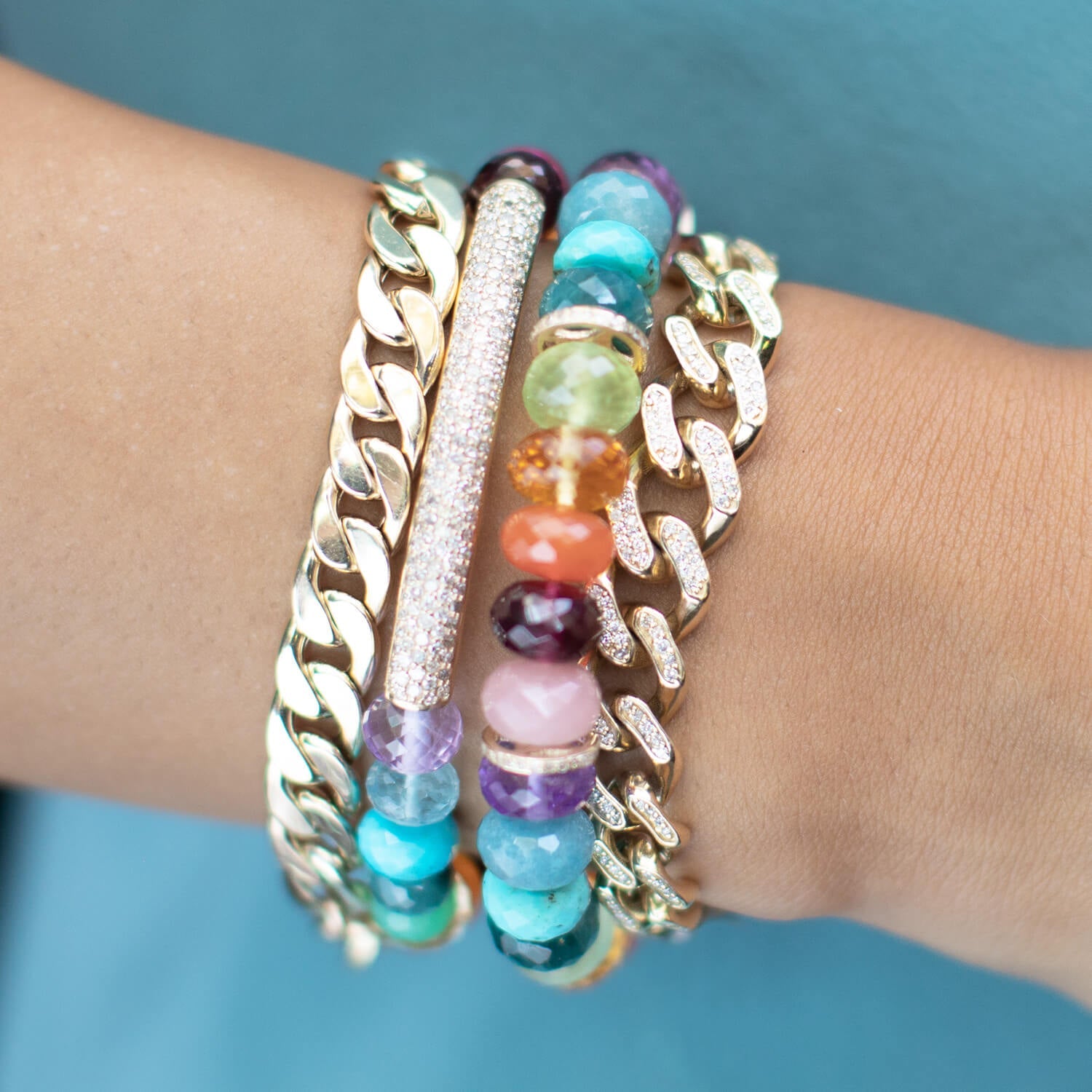 Rainbow Gemstone Mix Faceted Bracelet with 14K Pave Diamond Rondelles - 10mm