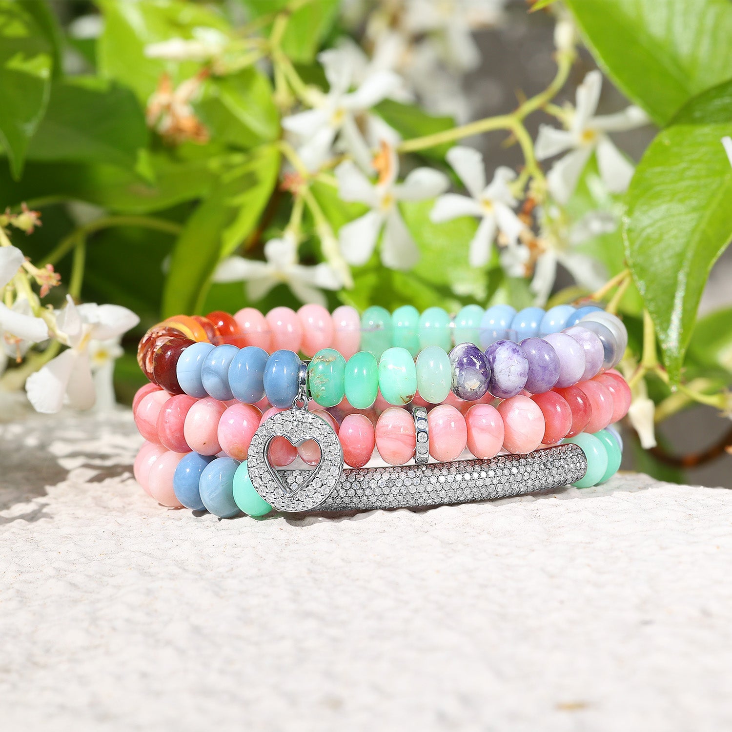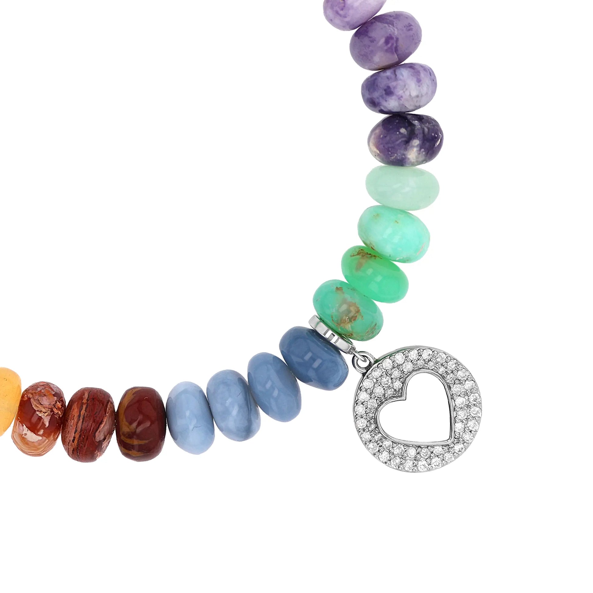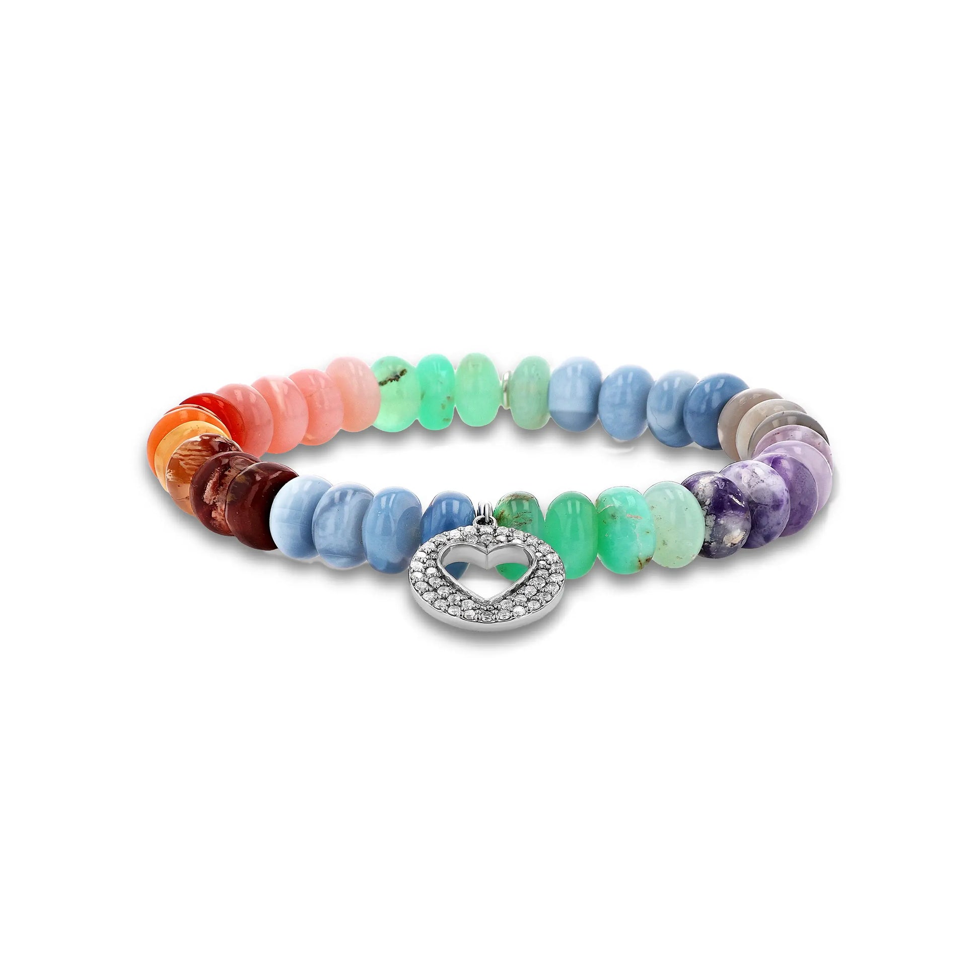 Rainbow Opal Mix Bracelet with Diamond Open Heart Charm - 8mm