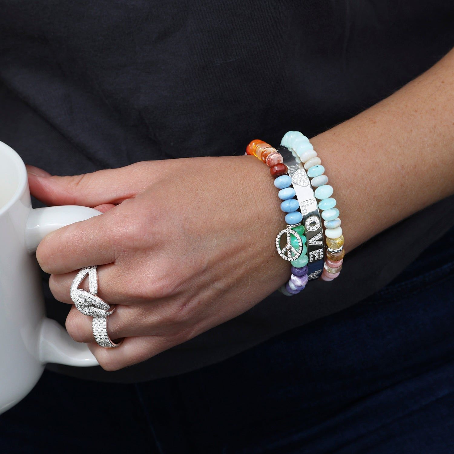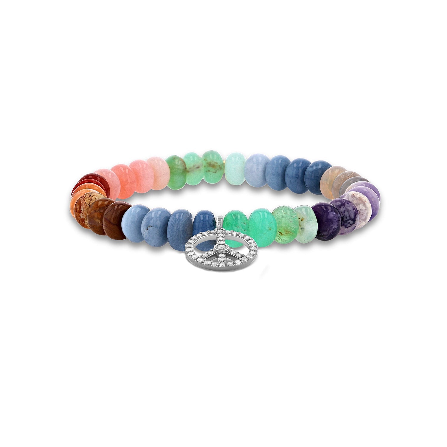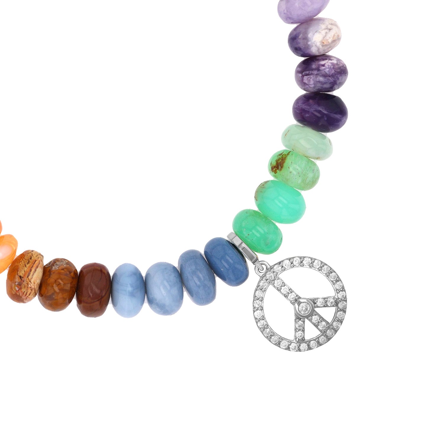 Rainbow Opal Mix Bracelet with Diamond Peace Sign Charm - 8mm