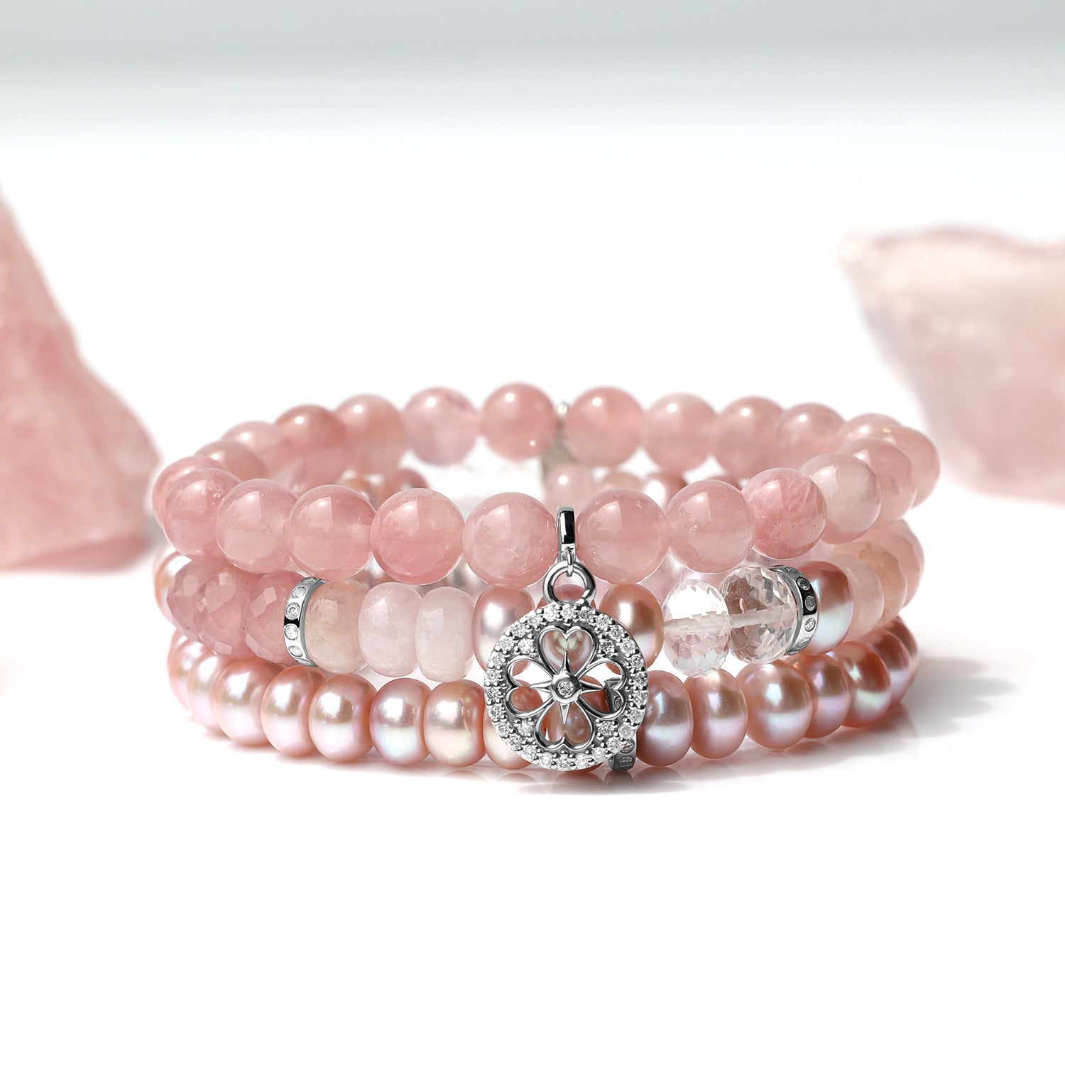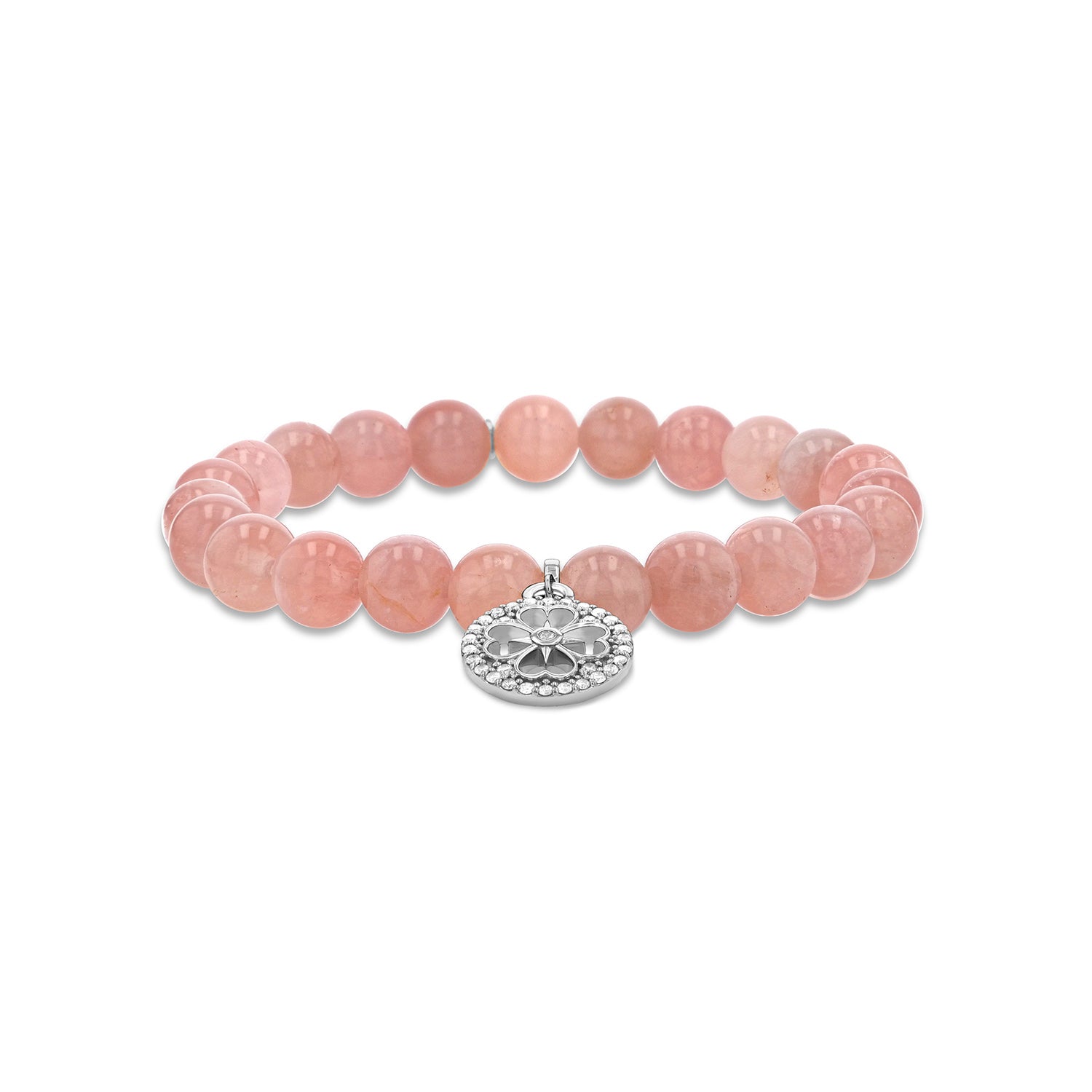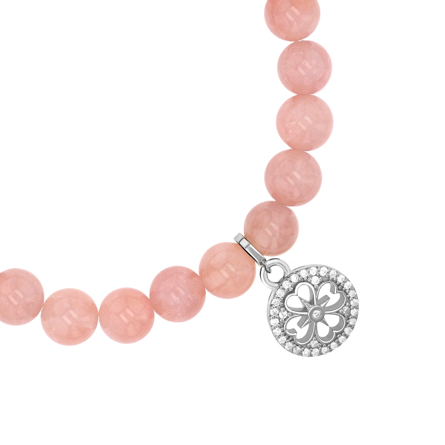 Rose Quartz Bracelet with Diamond Open Clover Charm - 8mm
