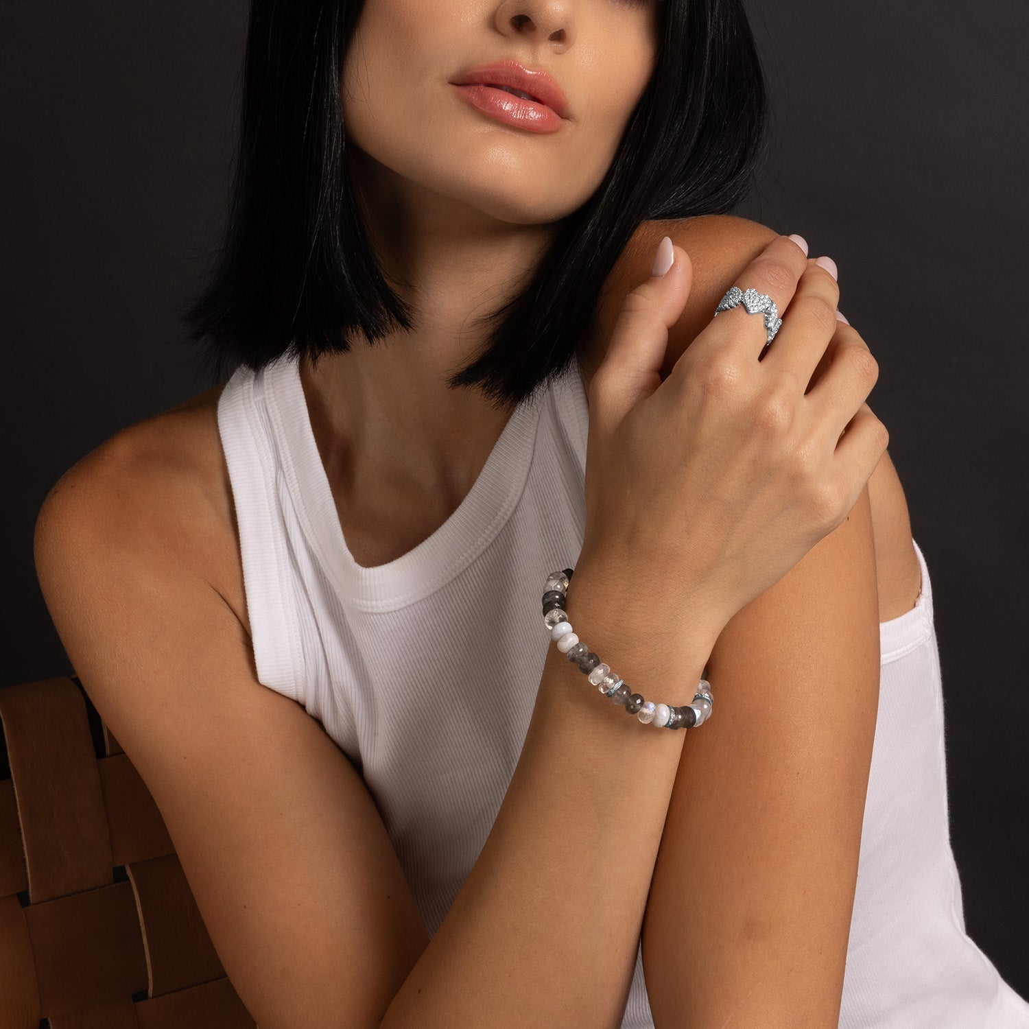 Slate Gemstone Mix Bracelet with Diamond Rondelles - 8mm