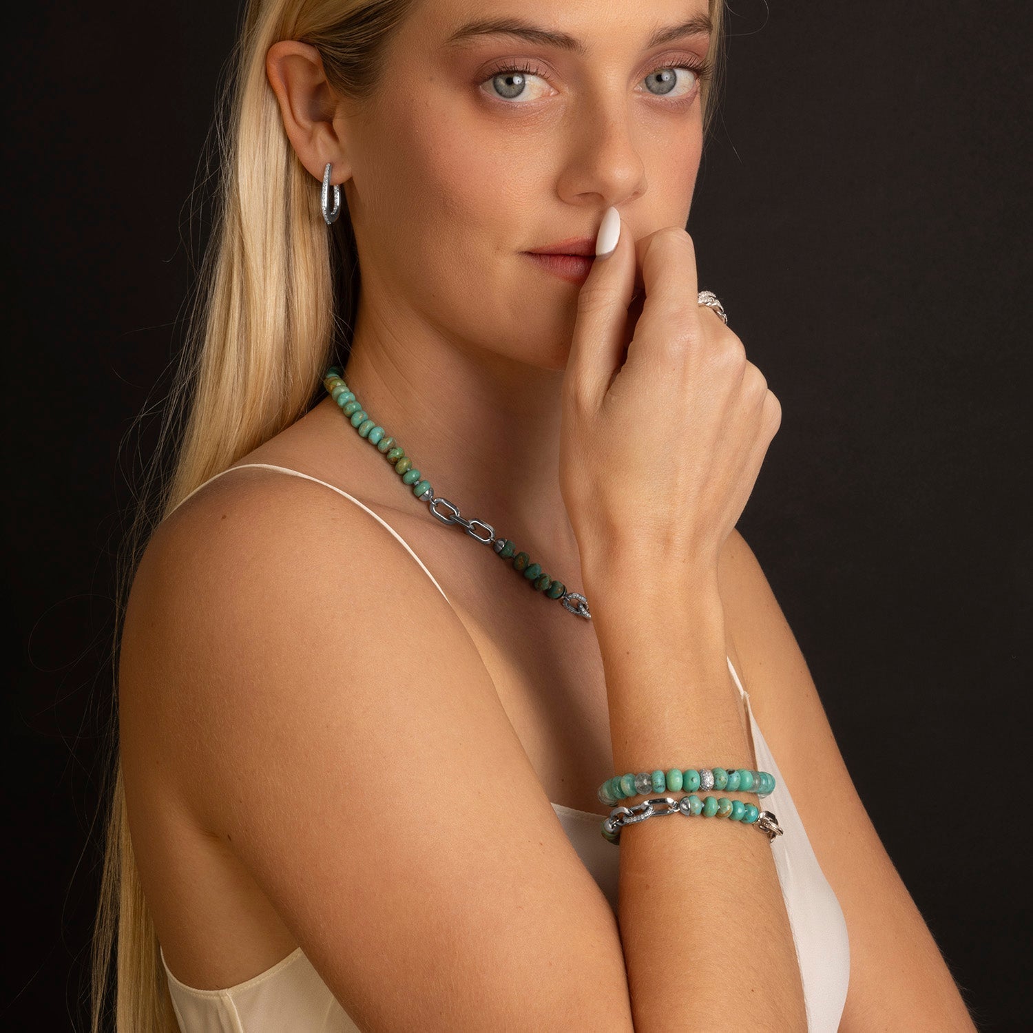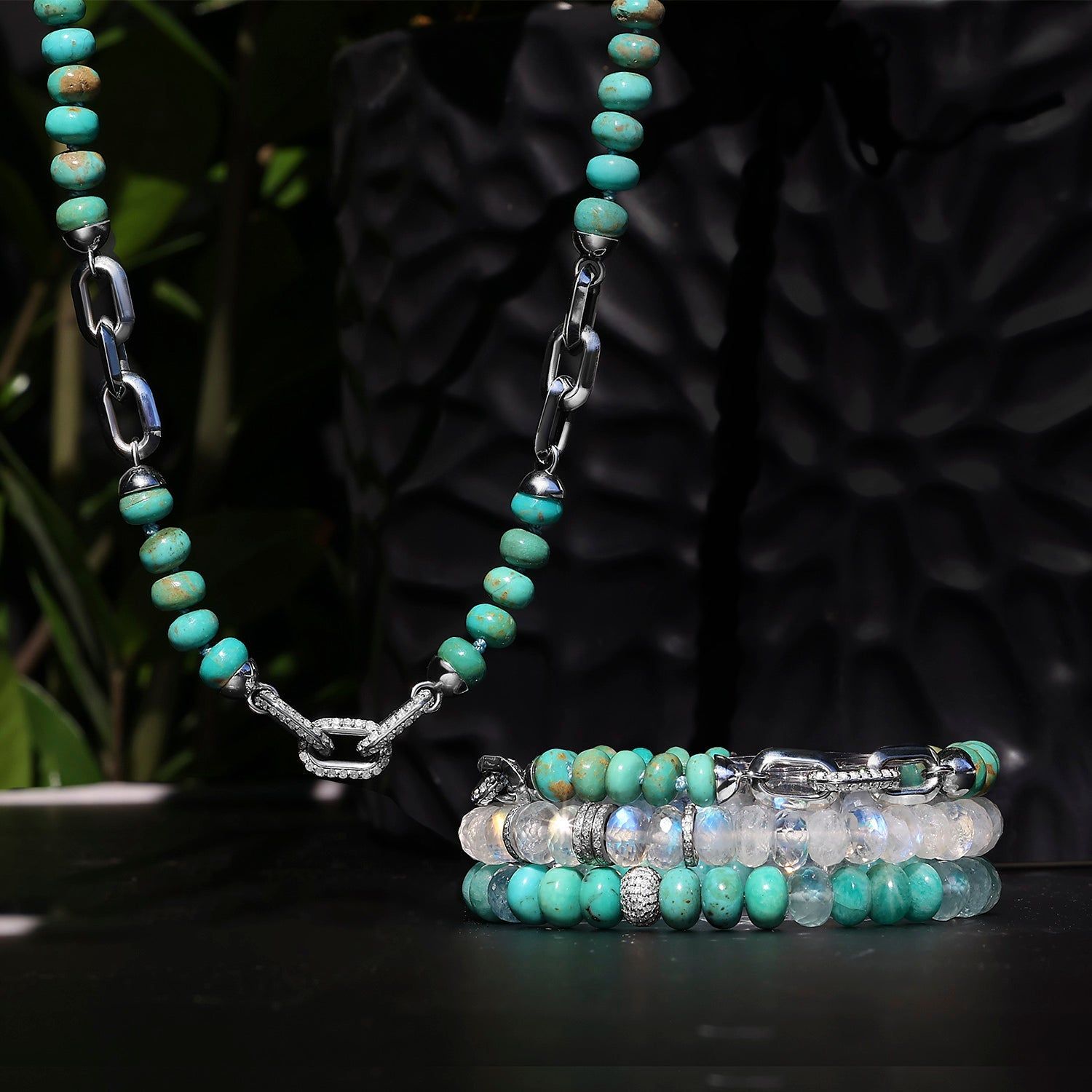 Turquoise Mix Beaded Bracelet with Diamond Donut - 8mm
