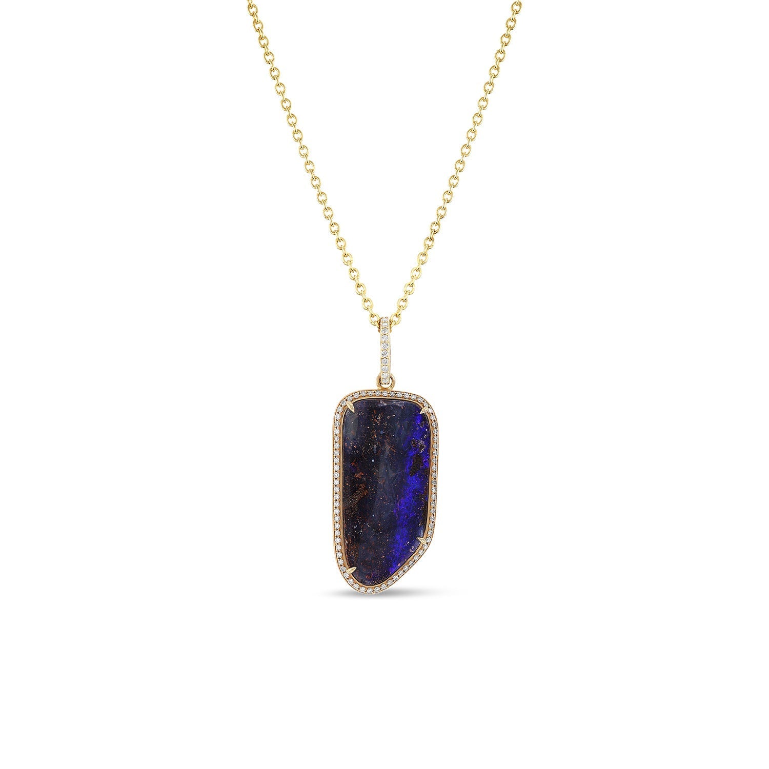 14k Freeform Opal and Diamond Pendant - One of a Kind