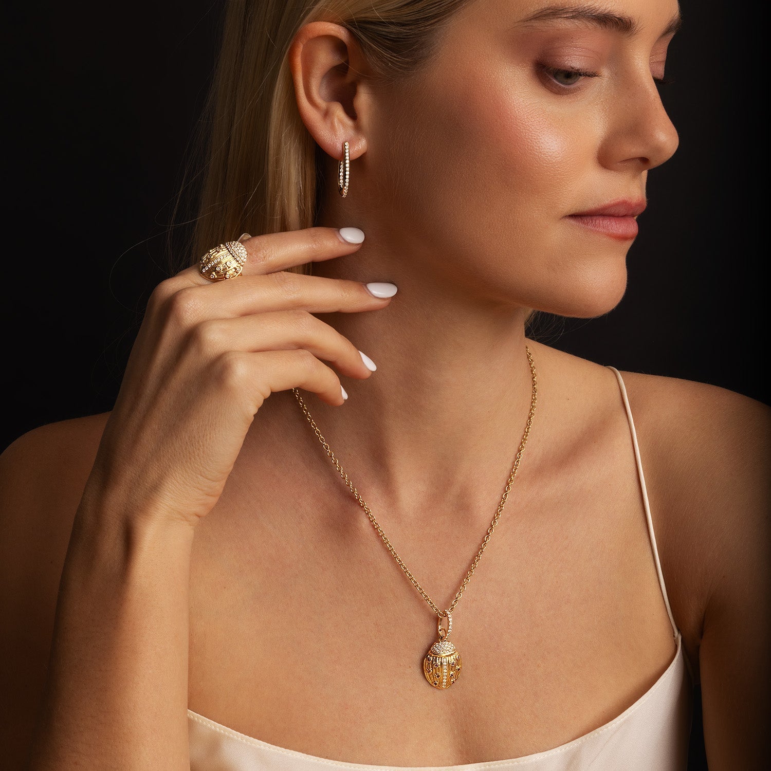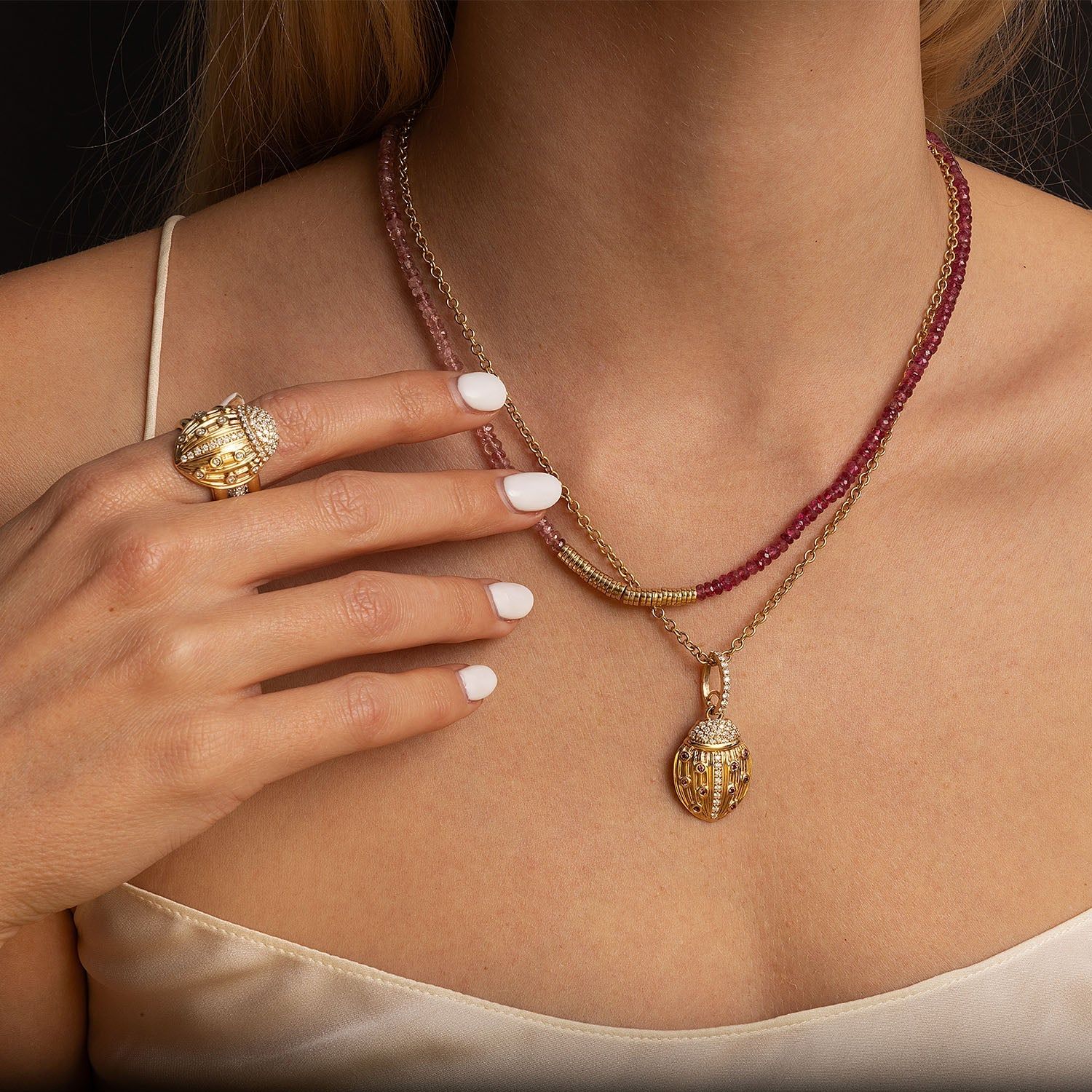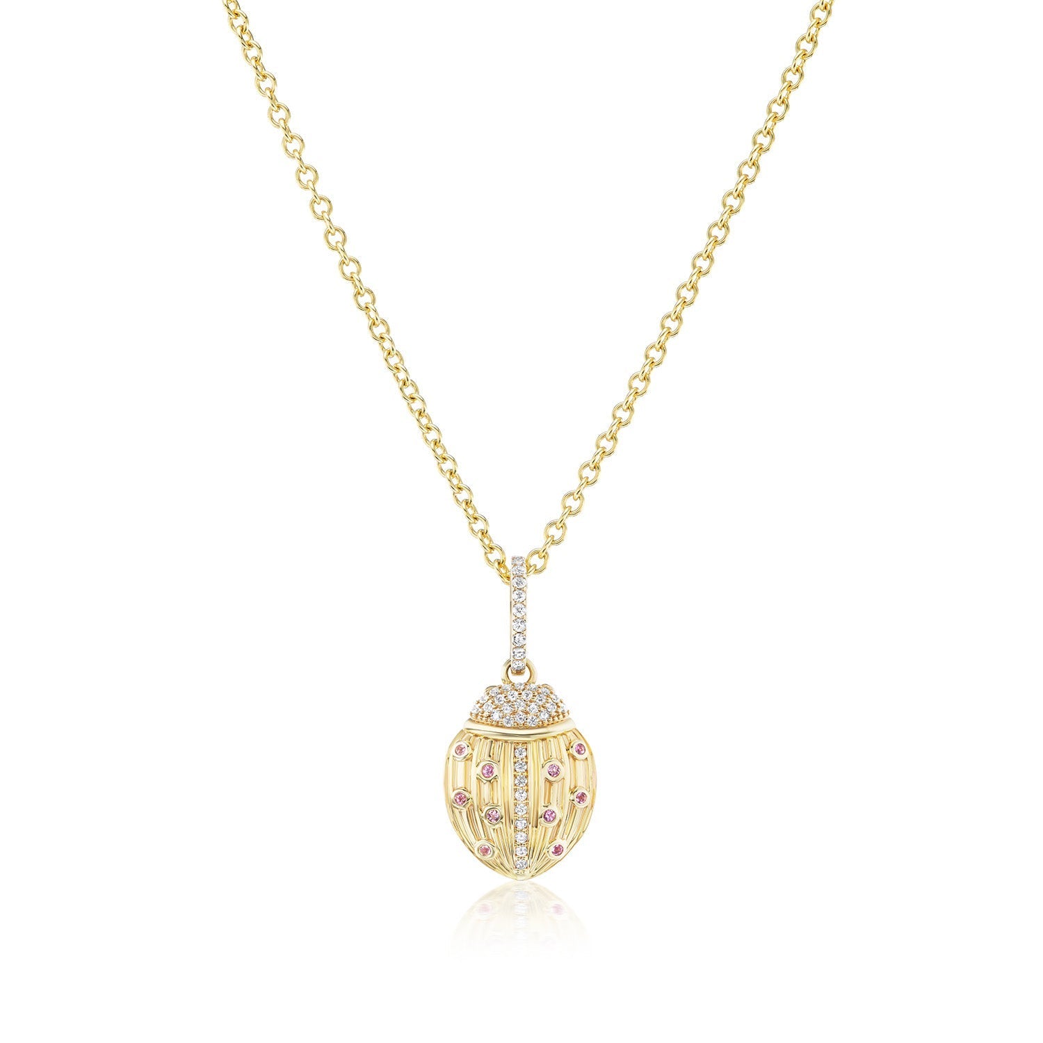 14k Love Bug with Pink Tourmaline & Diamond Pendant on Cable Chain Necklace - 18"