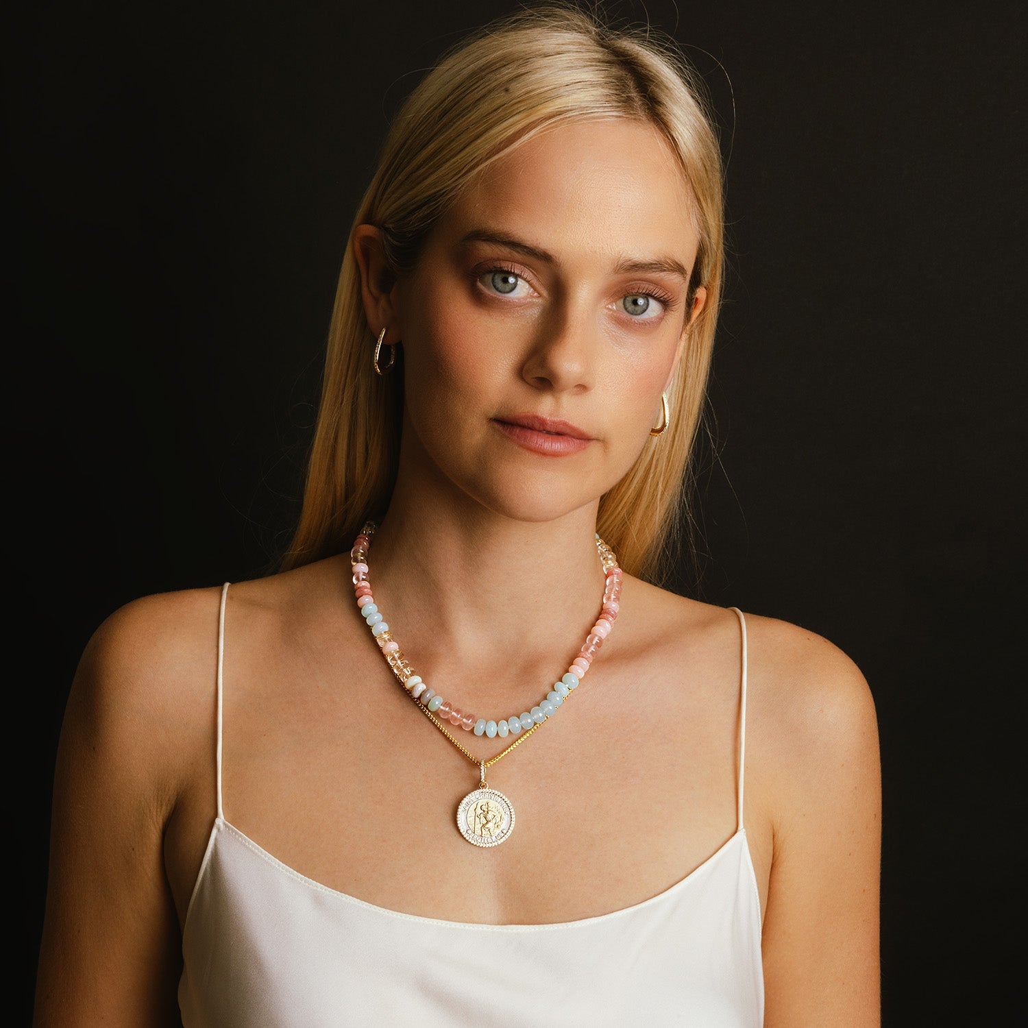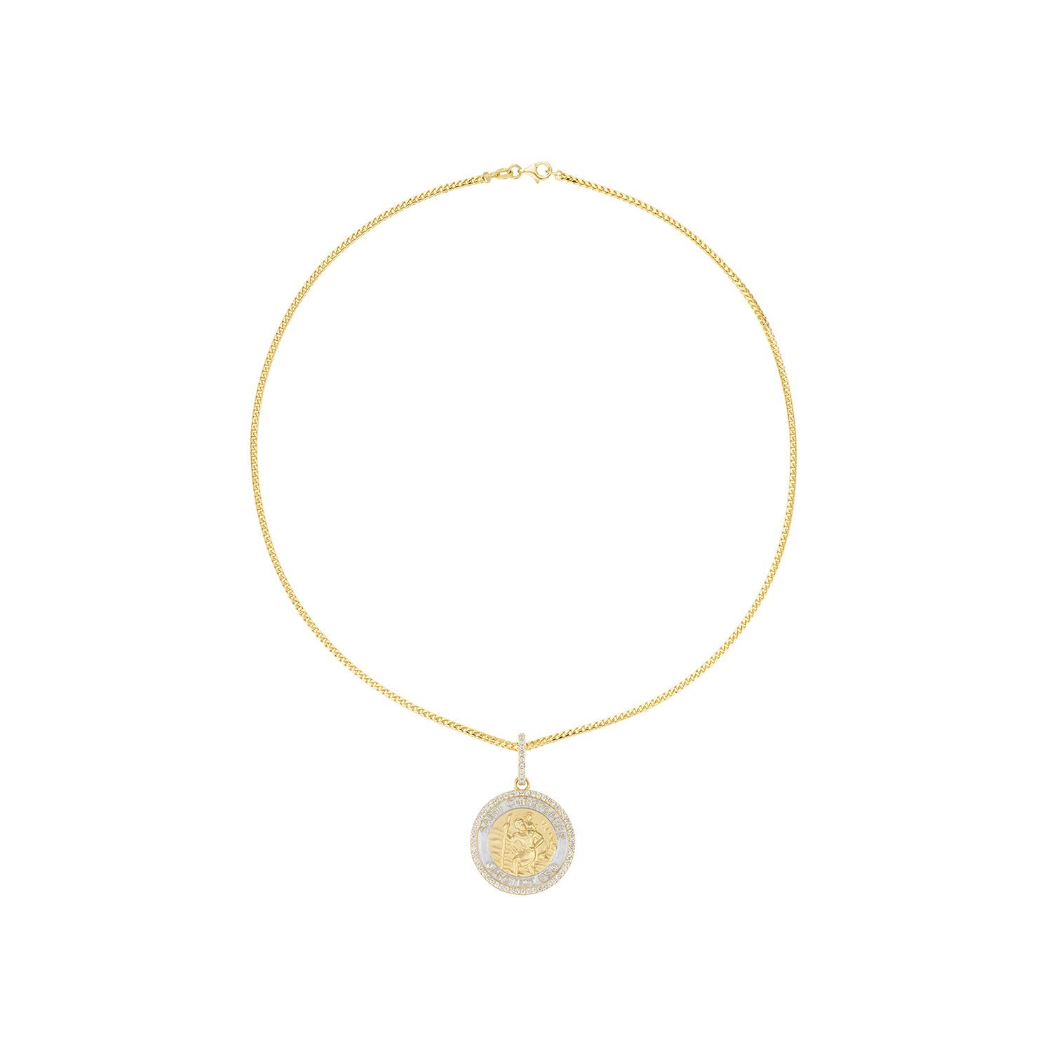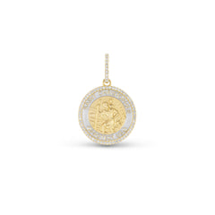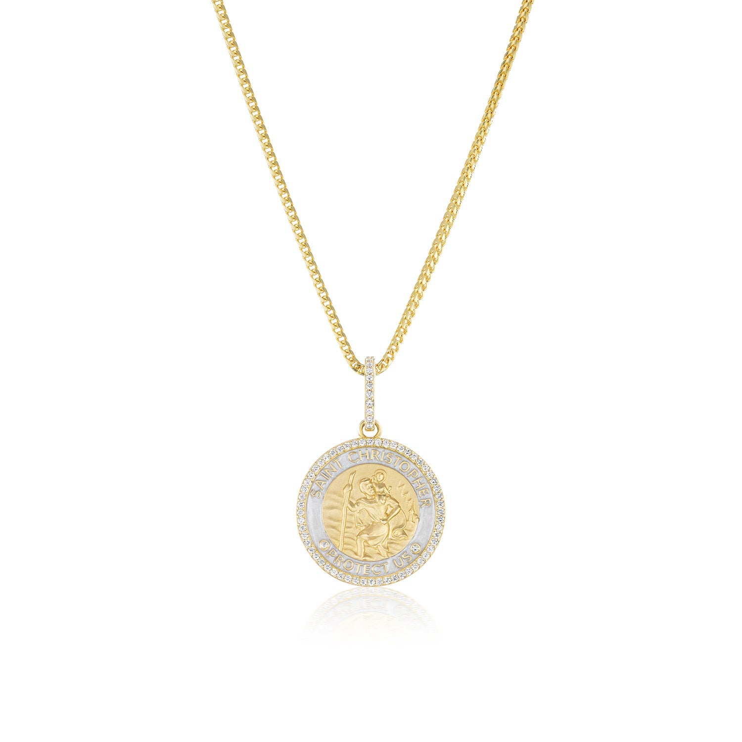 14k St. Christopher "Protect Us" Diamond & White Enamel Pendant Only or on Franco Chain 18"