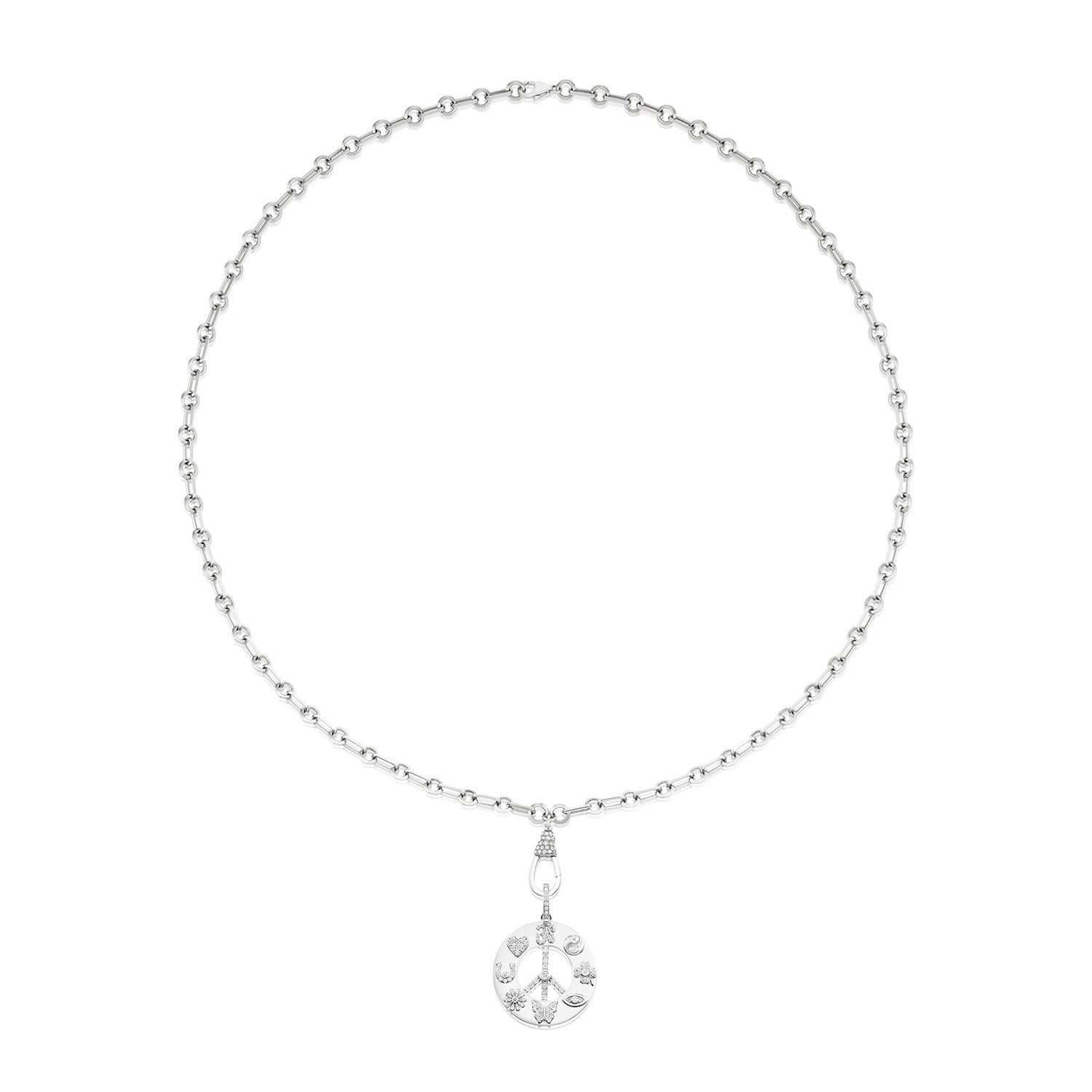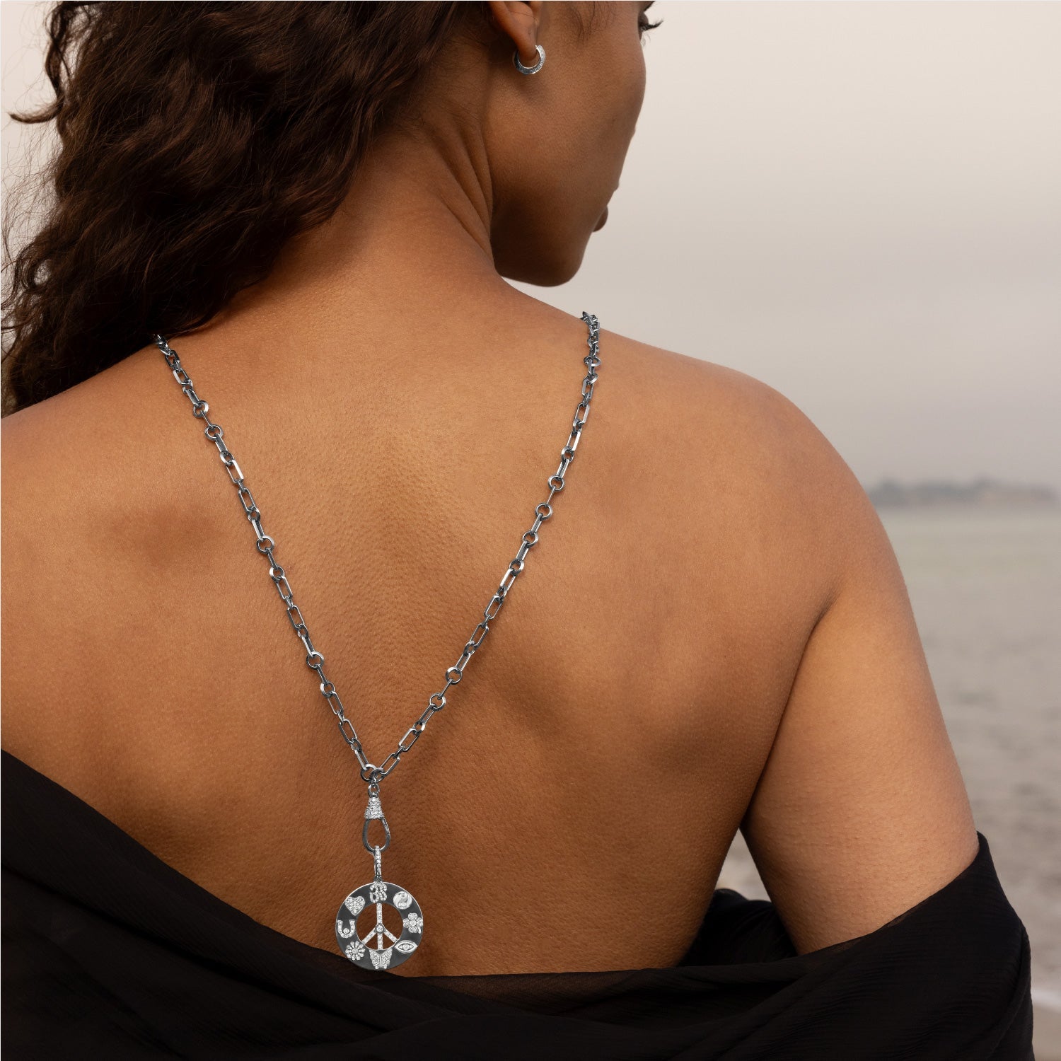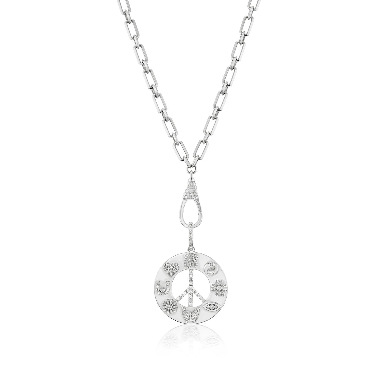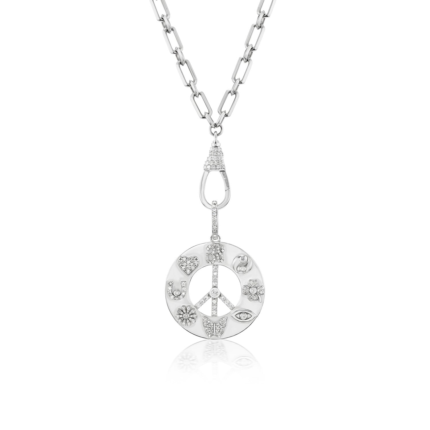 Inspired by all my female heroes who have led the way in manifesting love, serenity, independence, divine guidance, faith and luck I designed this medallion as a talisman that empowers women to manifest their destiny. Om, Yin Yang, four leaf clover, evil eye, butterfly, daisy, horseshoe, and heart come together to remind the wearer to manifest and embody all of these qualities.