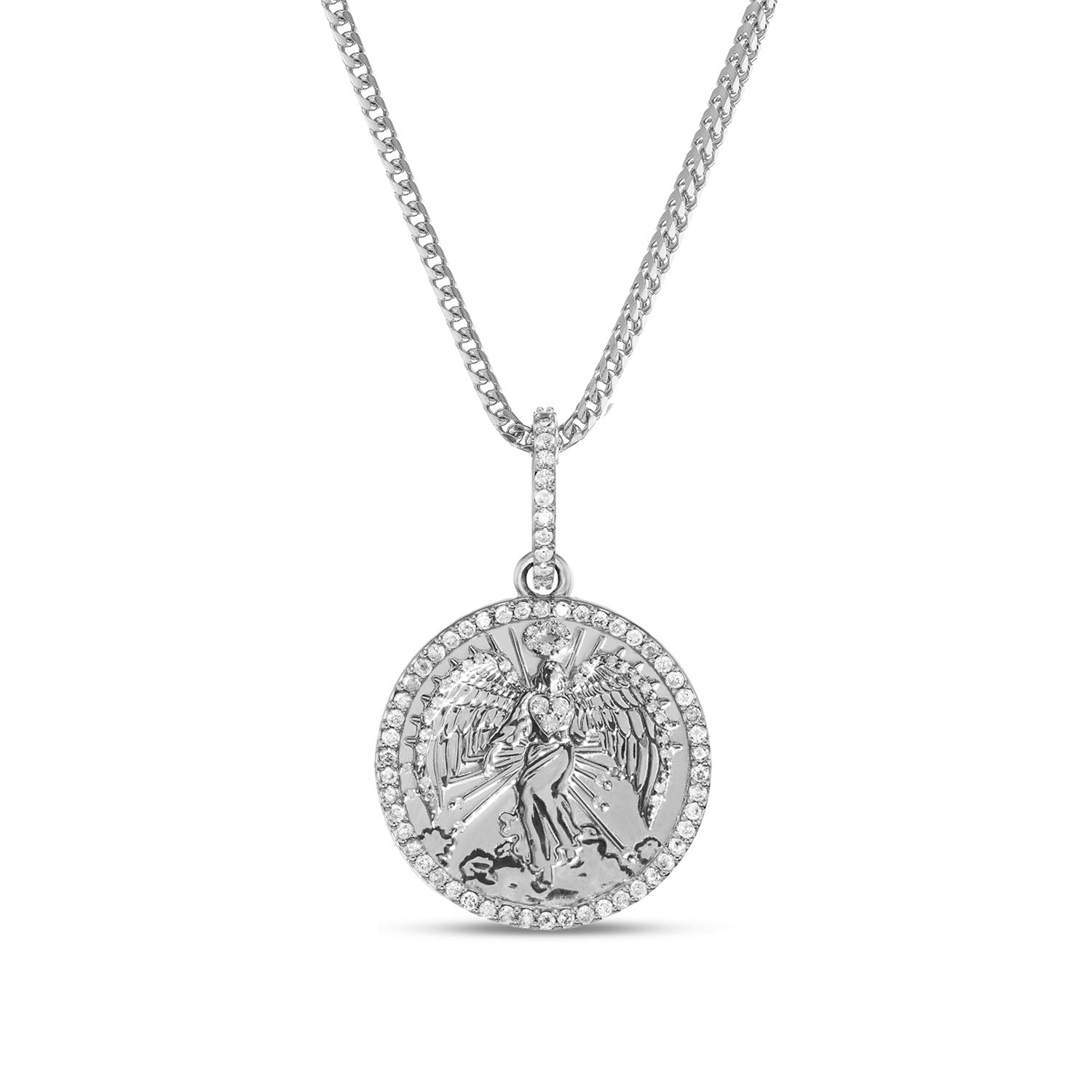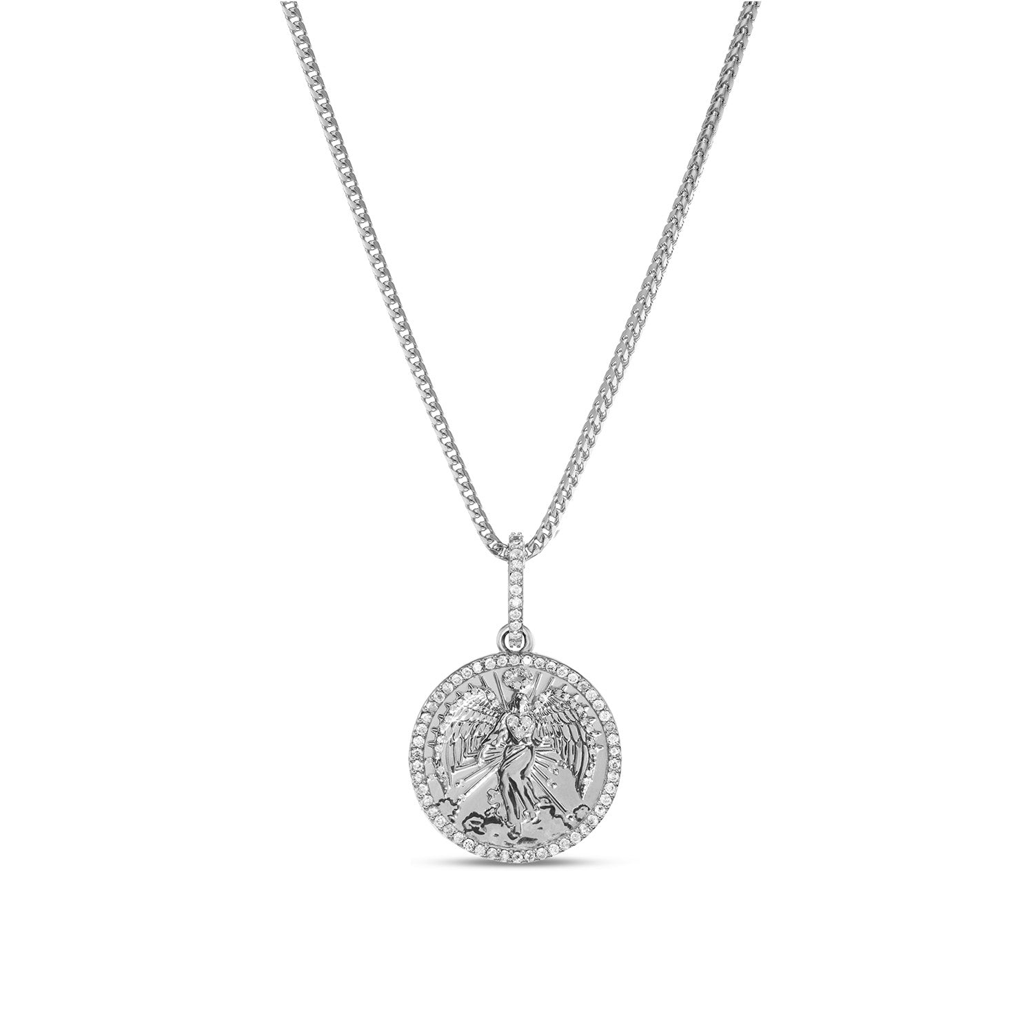 Silver and Diamond Guardian Angel Coin Pendant Only or on Franco Chain - 18"