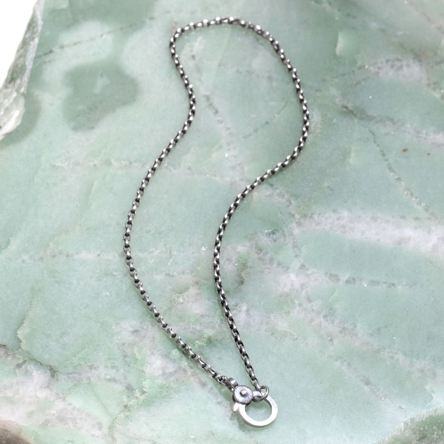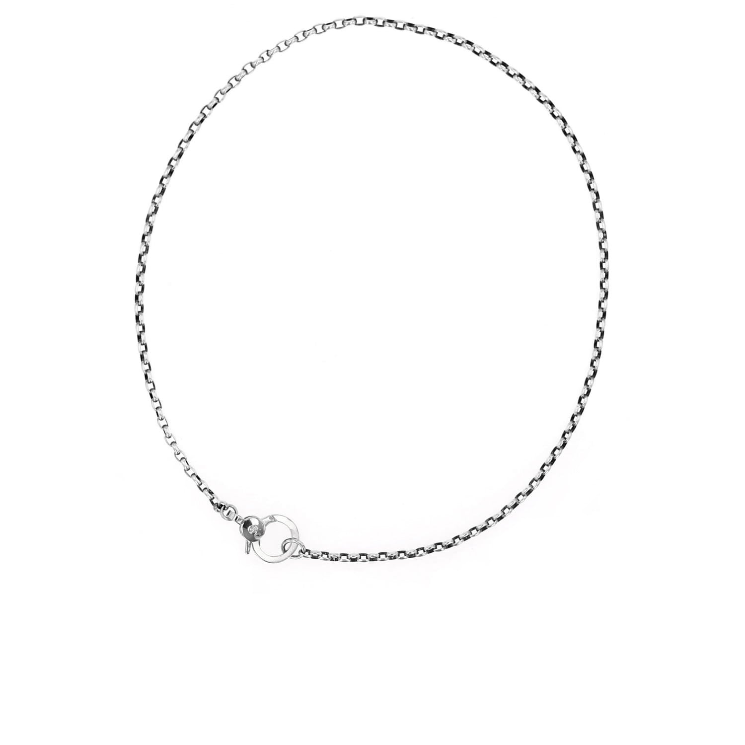 Silver Box Chain Necklace with Single Diamond Claw Clasp - 17"