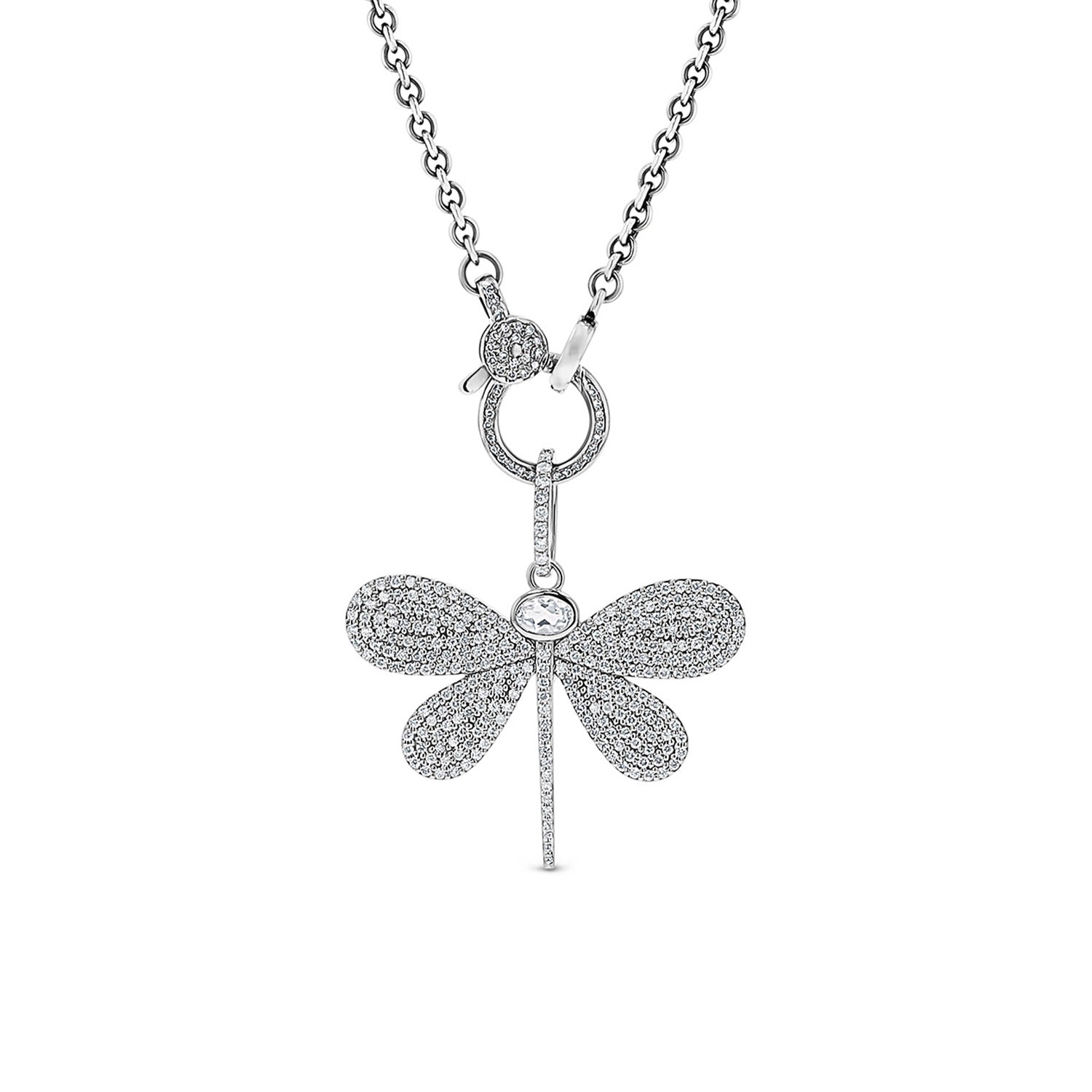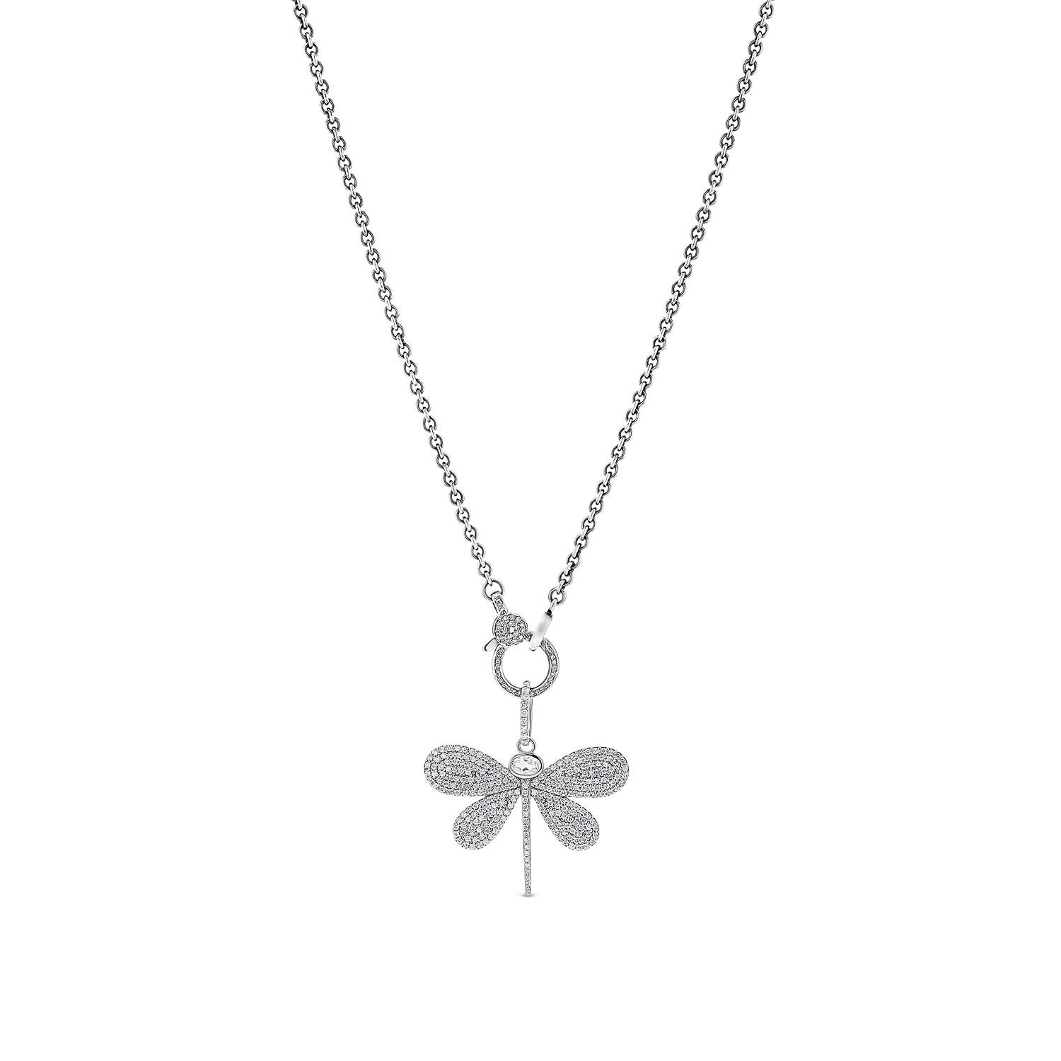 White Topaz and Diamond Dragonfly Pendant Only or on Cable Chain