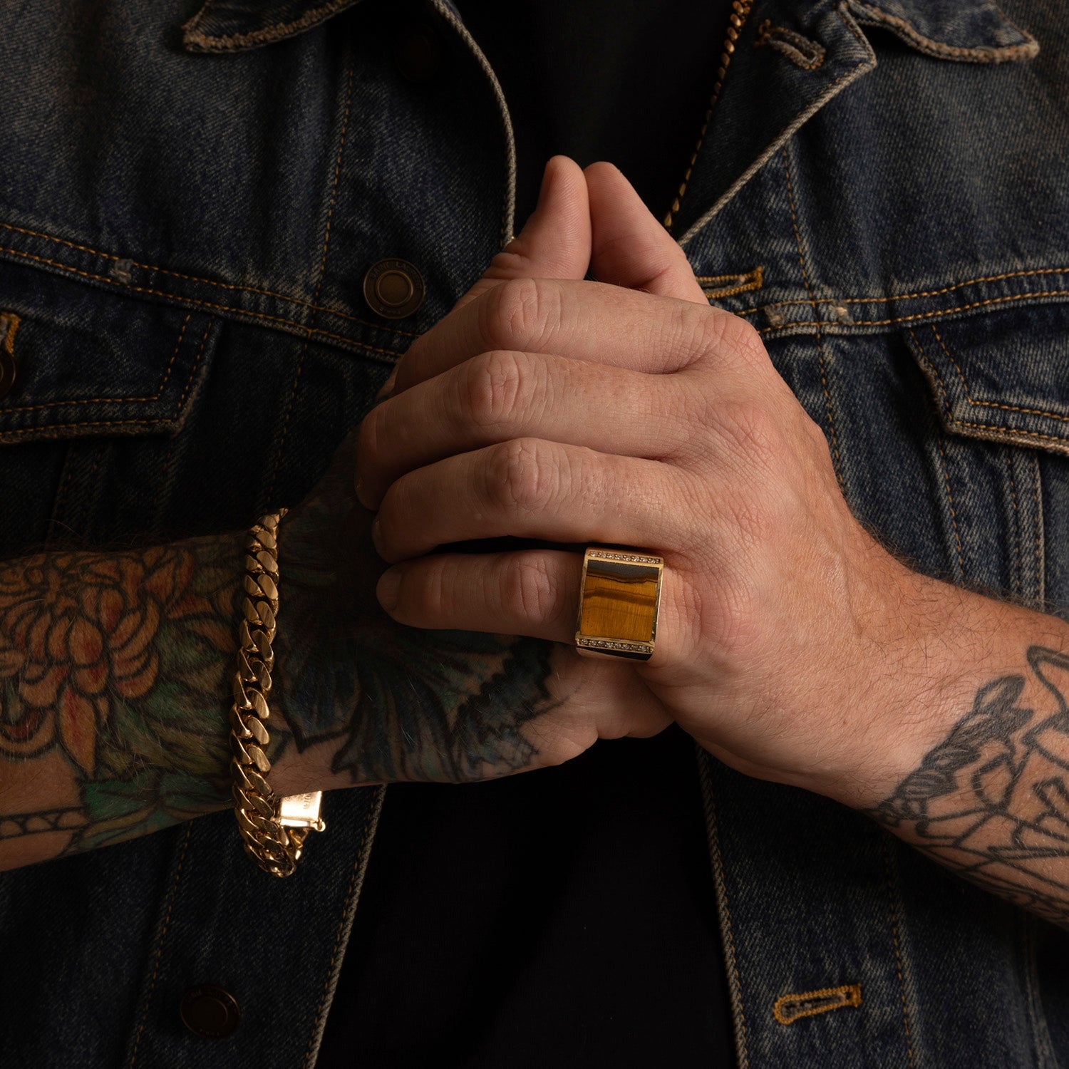 Men's Mr. LOWE 14k Tiger's Eye Ring with Diamonds