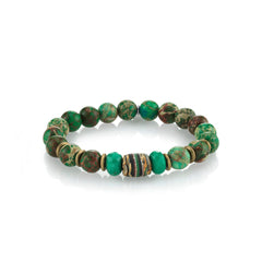 Men's Mr. LOWE Jasper Green Mix Bracelet with African Bead & Metal Disks - 10mm