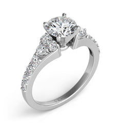 This Engagement Ring is available in 14K White Gold. There are a total of 14 stones. There are Rounds with a total carat weight of 0.58 set in a setting.