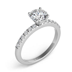 This Engagement Ring is available in 14K White Gold. There are a total of 12 stones. There are Rounds with a total carat weight of 0.22 set in a Prong Set setting.