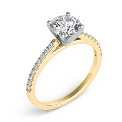 This Engagement Ring is available in 14K Yellow Gold. There are a total of 18 stones. There are Rounds with a total carat weight of 0.18 set in a Prong Set setting.