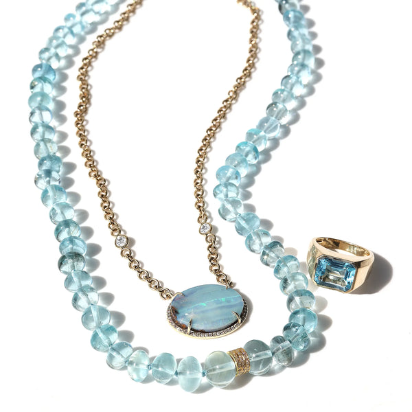 14k Light Blue Topaz Rectangle Signet Ring - One of a Kind