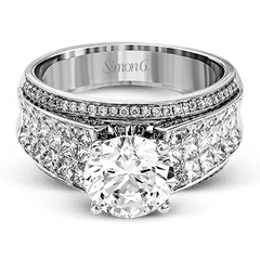 This stunning engagement ring features a bold, contemporary design adorned with a sparkling combination of princess and round diamonds.