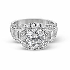 This gorgeous engagement ring absolutely dazzles with an eye-catching combination of baguette and round diamonds.