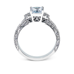 This vintage-style ring features a floral-inspired design and is adorned with sparkling diamonds.