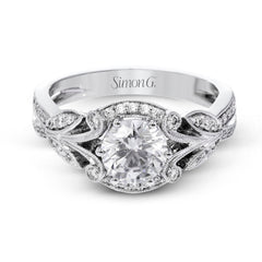 This amazing engagement ring features vintage-inspired design elements and is set with brilliant white diamonds.
