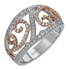 This bold ring makes quite a statement with swirling strands of rose gold and shimmering white diamonds.