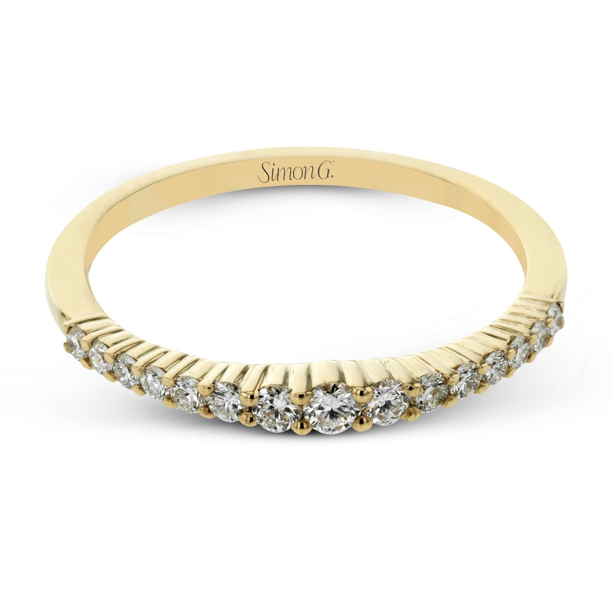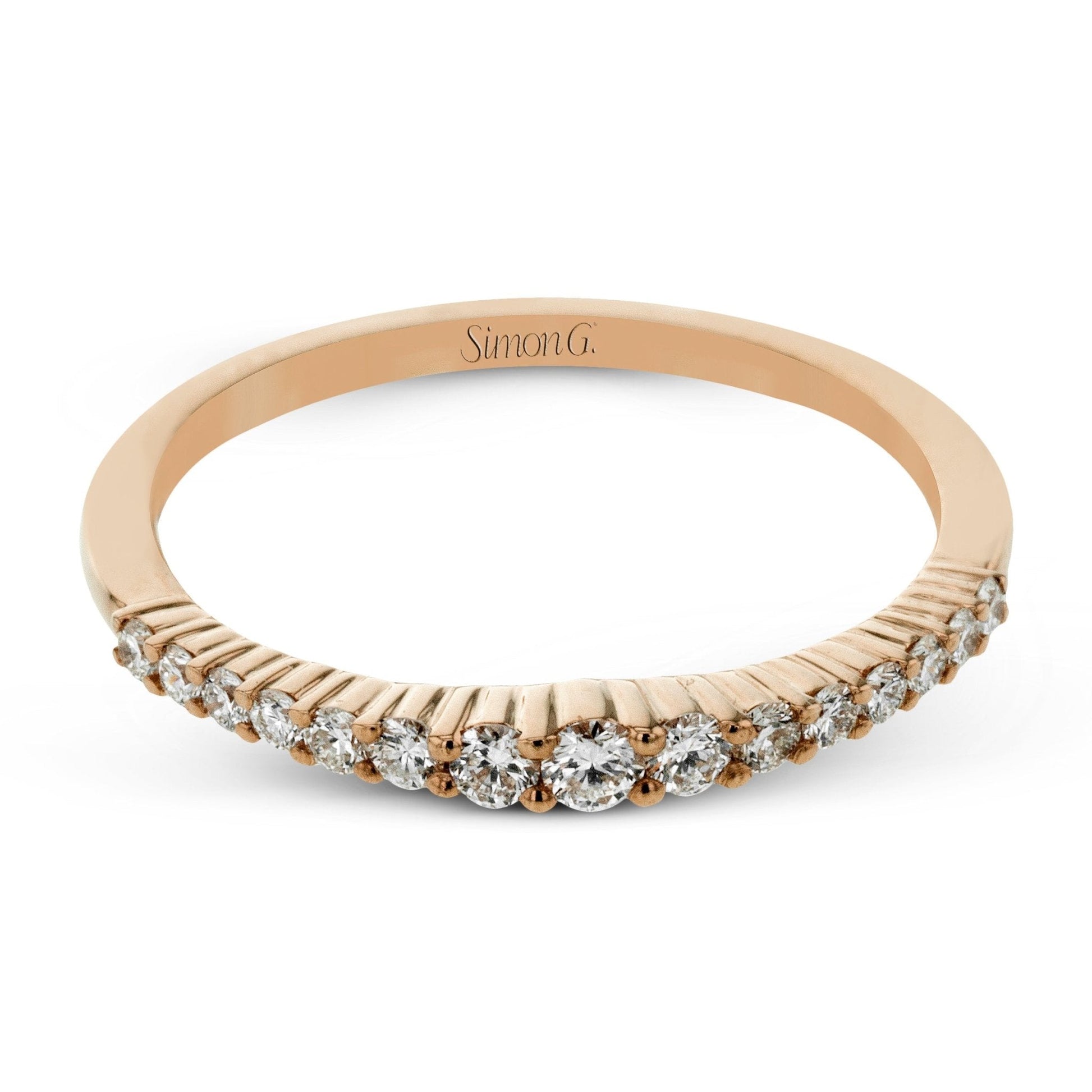 This lovely band comes is set with brilliant diamonds and make the perfect addition to a ring stack.
