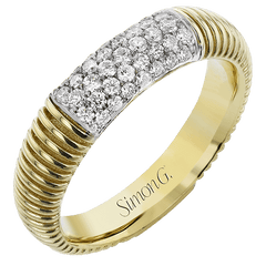 This beautiful ring has a domed rib design accented with glimmering rows ofPav-set diamonds on three sides.