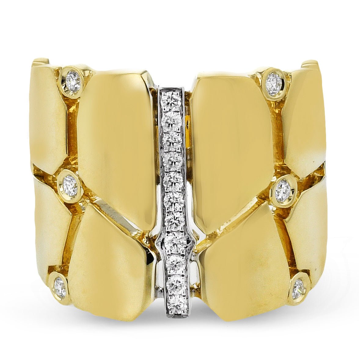 This eye-catching, two-tone ring features a unique shank accented by sparkling diamonds set in white gold.