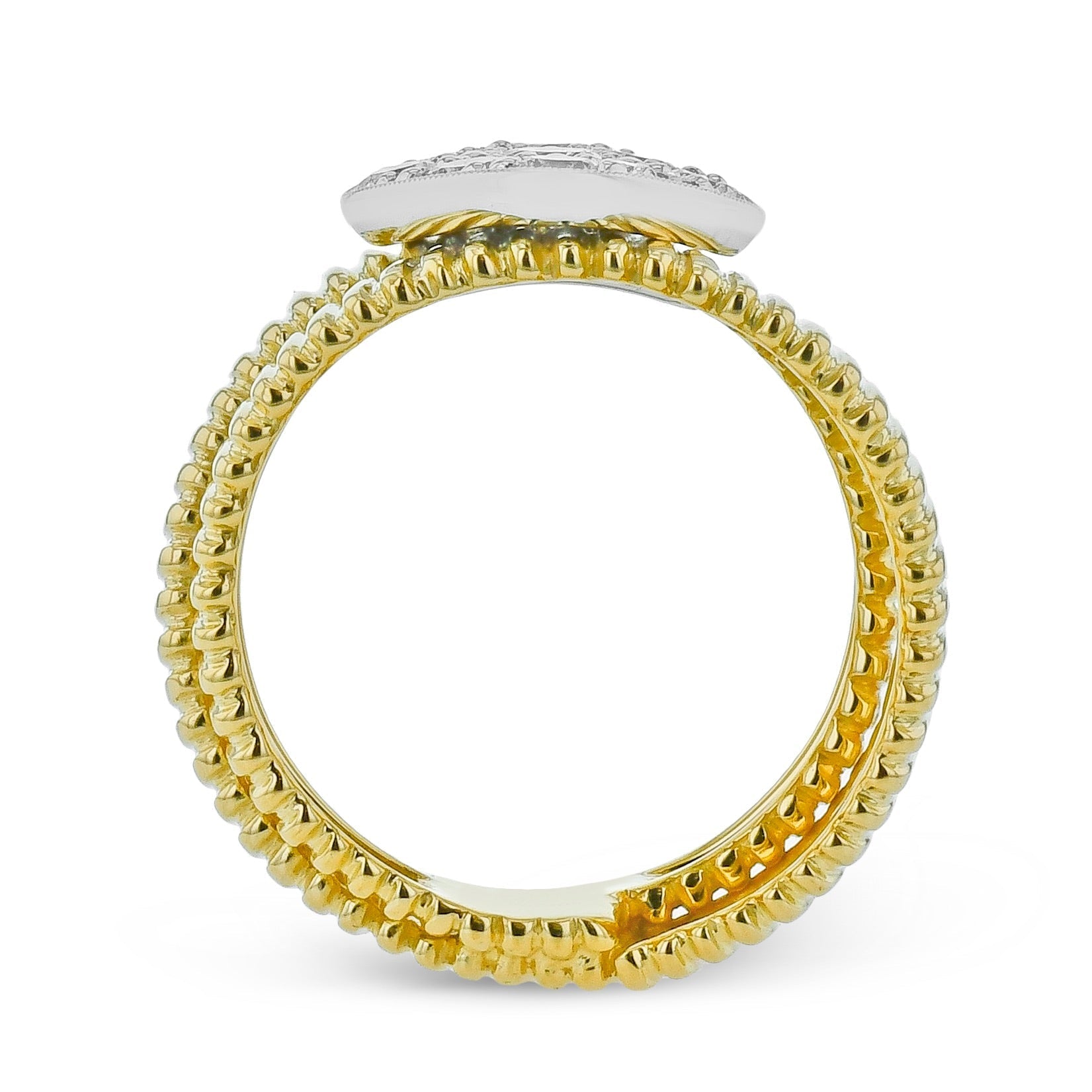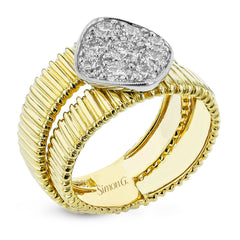 This statement ring features a stunning ribbed yellow gold shank and a clover cluster of sparkling diamonds set in white gold.